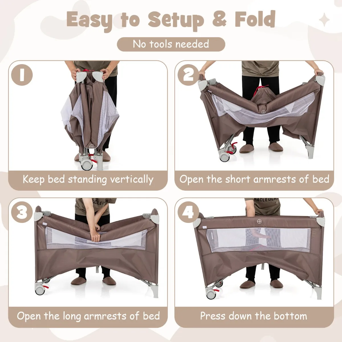 【Draagbaar voor gemakkelijk reizen】 Deze wieg is ontworpen voor actieve gezinnen, kan compact worden opgevouwen en wordt geleverd met een opbergtas voor probleemloos transport. Of je nu op bezoek gaat bij opa en oma of op vakantie gaat, het snelvouwmechanisme en de vergrendelbare wielen maken het gemakkelijk te verplaatsen en op te bergen.