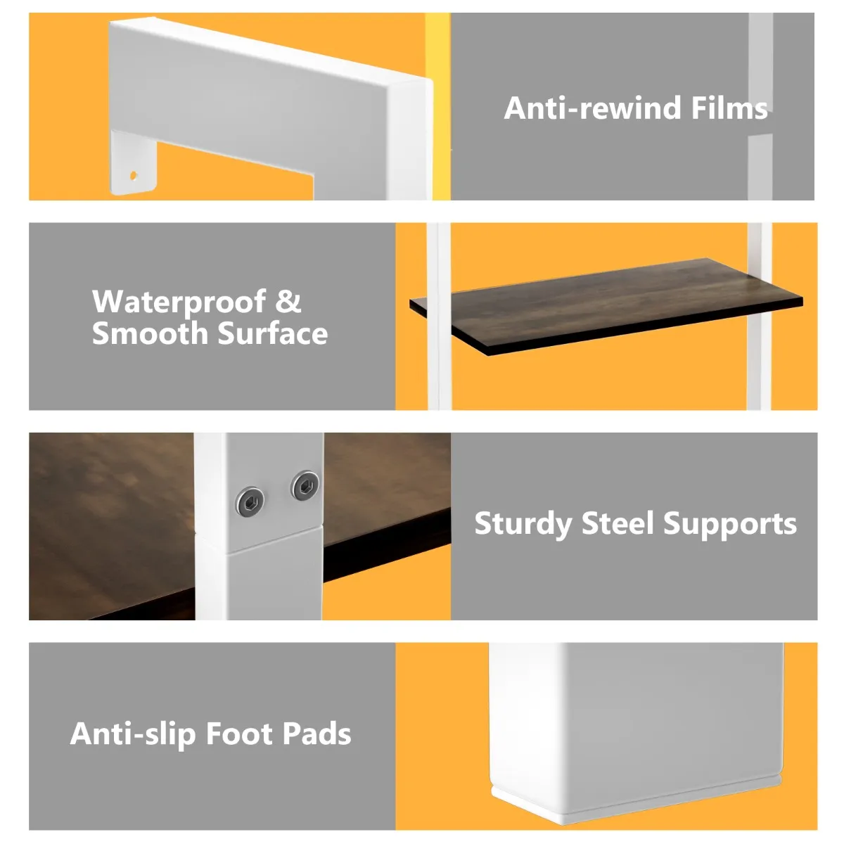 【Stevige en stabiele constructie】Vervaardigd van hoogwaardig spaanplaat en een metalen frame, is onze ladder opslag plank duurzaam genoeg voor een lange levensduur; elk niveau kan tot 23 kg bevatten. En alle lagen van de plank leunen tegen de muur in een hoek van 90° om ervoor te zorgen dat de items stabiel worden geplaatst.