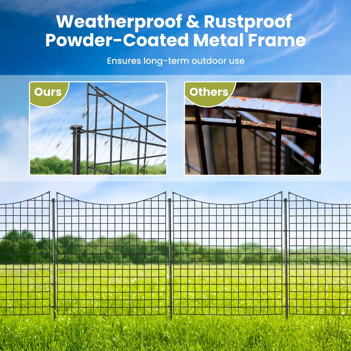 【Eenvoudige installatie】 Dit landschapshek kan eenvoudig worden opgezet. Je hoeft alleen de 5 hekelementen met 5 hoge metalen palen te verbinden en de palen vervolgens in de grond te steken. Bovendien is graven niet nodig, zodat je bloemen en planten niet worden beschadigd.