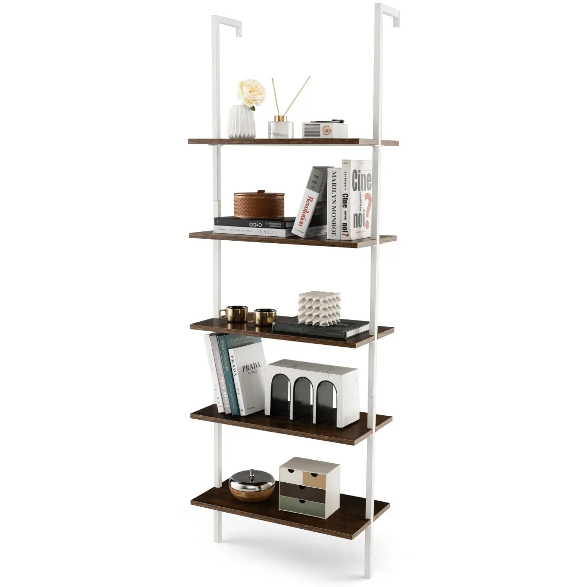 De gepoedercoate stalen structuur is gekwalificeerd als bescherming voor een hoog draagvermogen. Met de meegeleverde wandbevestigingsset wordt de ladderplank stevig vastgezet en wordt kantelen of schommelen sterk voorkomen. Het wordt trouwens geleverd met antislip glijders, zodat de vloer goed beschermd is tegen krassen. Met 5 brede planken kan er perfect worden gezorgd voor dagelijkse opslag. Je kunt hem bijvoorbeeld gebruiken om boeken, decoraties, planten en serviesgoed op verschillende plaatsen op te bergen. Al met al is het een klassieke en praktische aanwinst voor je huis, die alleen eenvoudig geïnstalleerd hoeft te worden.