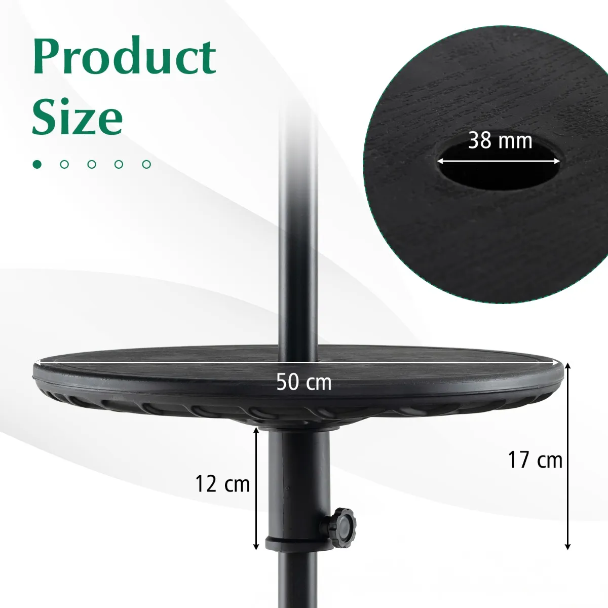 【Breed, in hoogte verstelbaar ontwerp】: De parasoltafel van 50 cm biedt voldoende ruimte om je drankjes, telefoon en snacks binnen handbereik te houden. Het parasoltafelblad heeft een adapter voor de bevestiging van de parasol en is geschikt voor terrasparasols met een stok van 38 mm. Bovendien kun je het ronde tafelblad op de gewenste hoogte instellen.