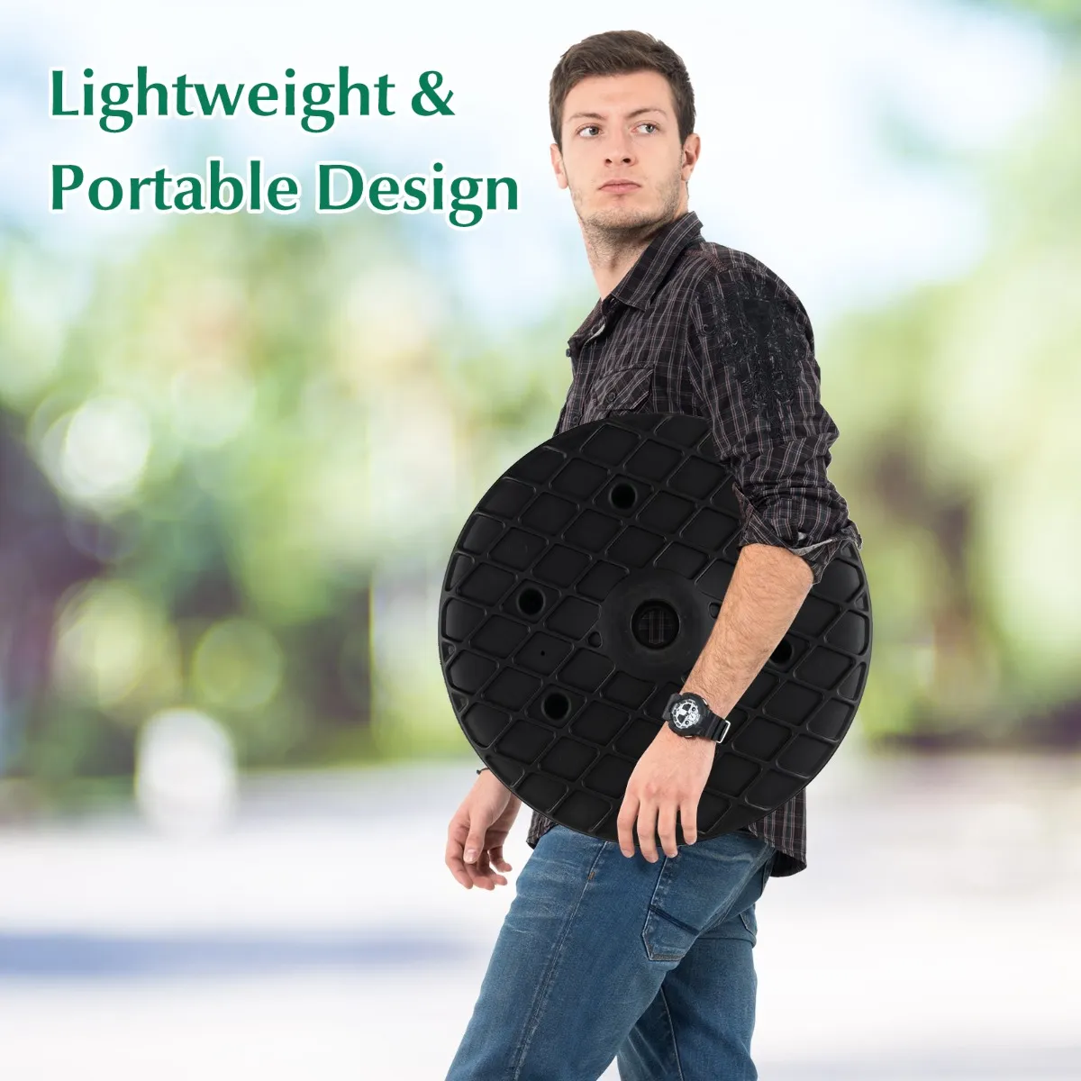 【Robuuste, duurzame constructie】: Het ronde draagbare tafelblad is gemaakt van hoogwaardig, waterdicht, slijtvast en scheurbestendig PE om het hele jaar door zware omstandigheden te kunnen weerstaan. Bovendien is het eenvoudig schoon te maken door het tafelblad af te nemen met een vochtige doek. En het unieke diamantvormige ontwerp zorgt voor een gelijkmatige verdeling van de kracht om kromtrekken te voorkomen.
