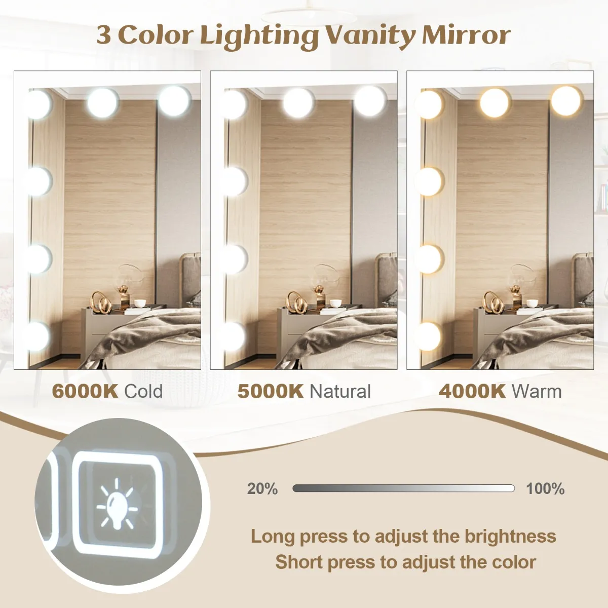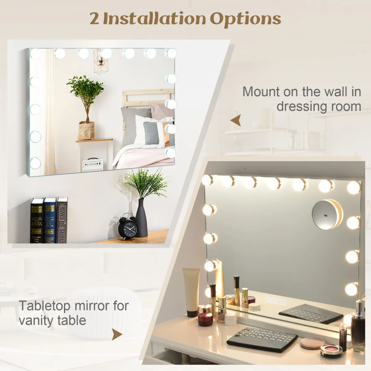 Boodschappenspiegel met 3-kleurenverlichting : Deze HD make-up spiegel is uitgerust met 15 lampen van topklasse en biedt een zuivere, heldere reflectie voor de meest natuurlijke toepassing. Bovendien biedt deze verlichte make-upspiegel 3 verschillende verlichtingsopties: 6000 K koel, 5000 K natuurlijk en 4000 K warm, om je te helpen de perfecte make-up look te krijgen voor elke gelegenheid.