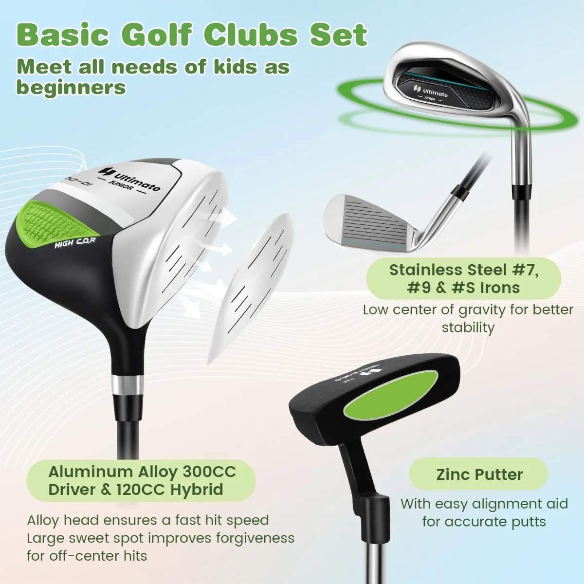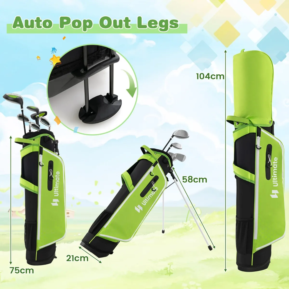 6-Delige Kindergolfclubset Met Golftas En Regenhoes Complete Golfset Incl. 7/9/S Ijzer 1 Driver 4 Hybride Putter Groen