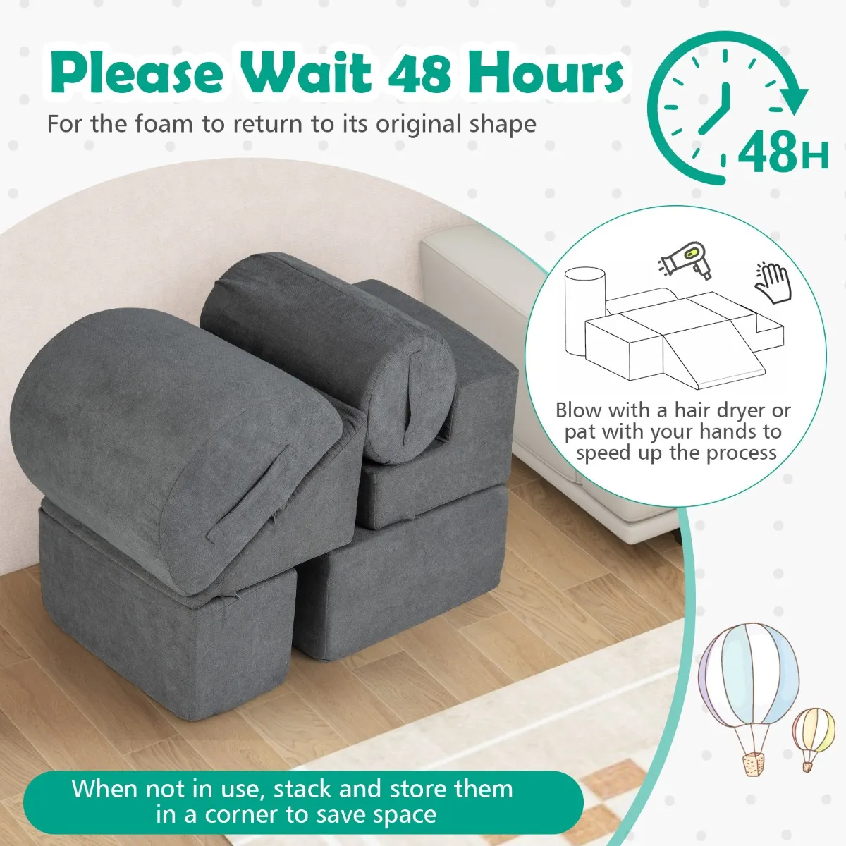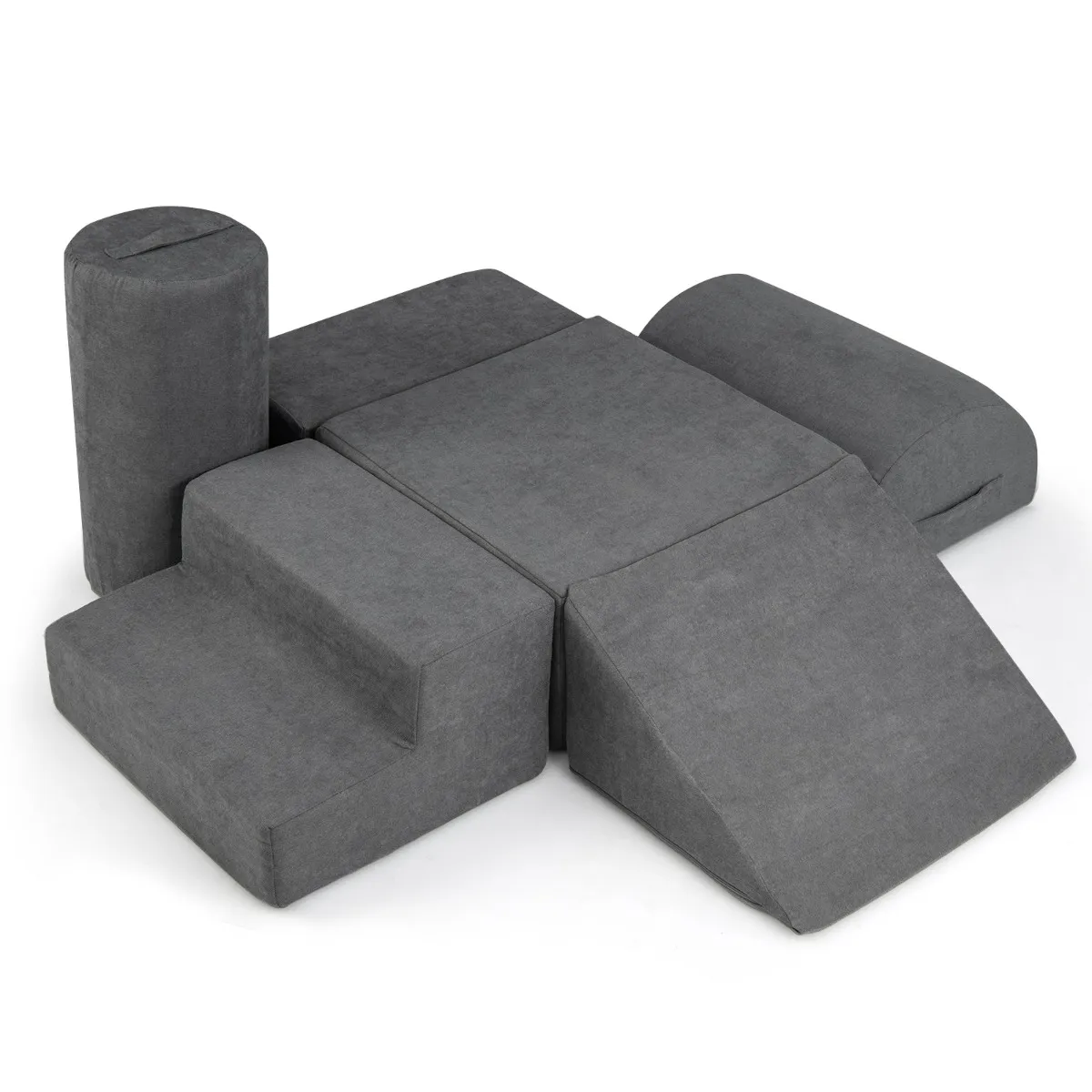De klim- en kruipspeelset is bekleed met zachte chenille-stof en gevuld met schuim met hoge dichtheid, wat een comfortabele en veilige speelruimte voor je kleintjes creëert. Deze modulaire speelset voor peuters omvat 6 verschillende vormen – een trede, een grote rechthoek, een kleine rechthoek, een wigvorm, een halve maan en een cilinder – die een verscheidenheid aan opstellingen bieden voor eindeloos plezier. Het lichte ontwerp en de praktische handgrepen maken het voor kinderen gemakkelijk om de klimblokken tijdens het spelen te verplaatsen.