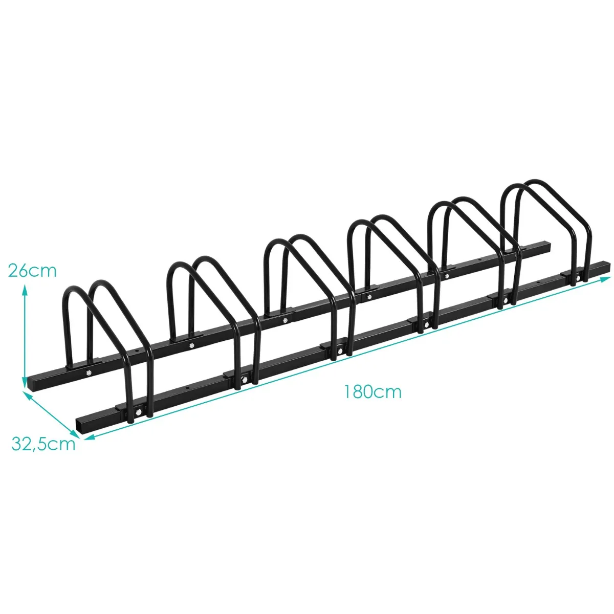 - Totale afmeting: 180 x 32,5 x 26 cm (6 fietsenrek)