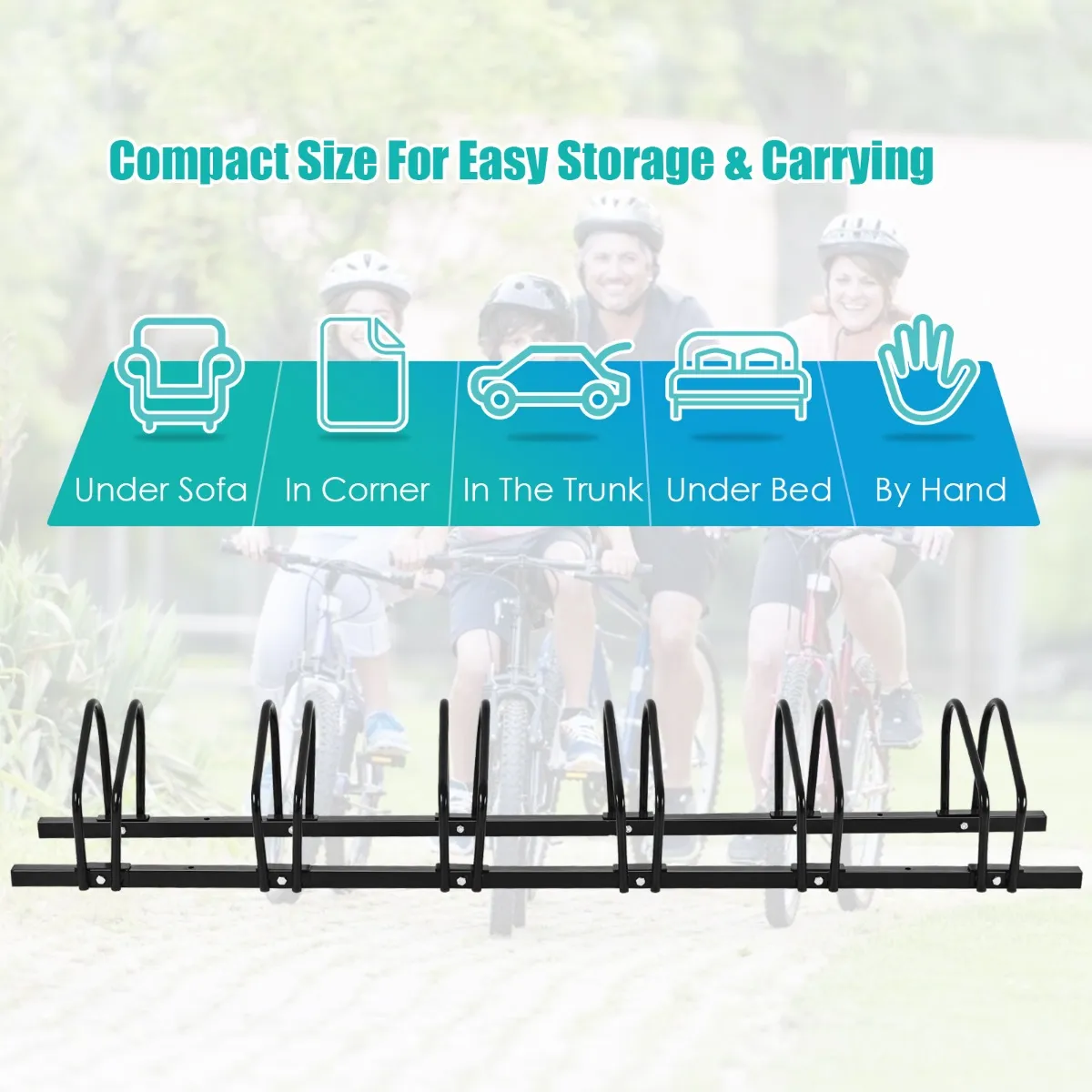Er zijn 6 opslag posities op elk rek waarmee u effectief kunt organiseren fietsen van verschillende types op een ordelijke manier. Op deze manier kunt u uw omgeving altijd opgeruimd houden, wat u zeker een goed humeur zal bezorgen. Afgezien van de systematische indeling van fietsen, kan ons fietsenrek dankzij de compacte afmetingen ook worden meegenomen als u op stap bent en zowel binnen als buiten worden gebruikt. Wat meer is, om hoge kwaliteit van fietsenrek te waarborgen, kiezen wij eersteklas staal als materiaal van fietsenrek dat in stevigheid opmerkelijk is.