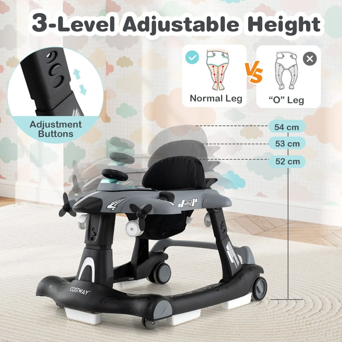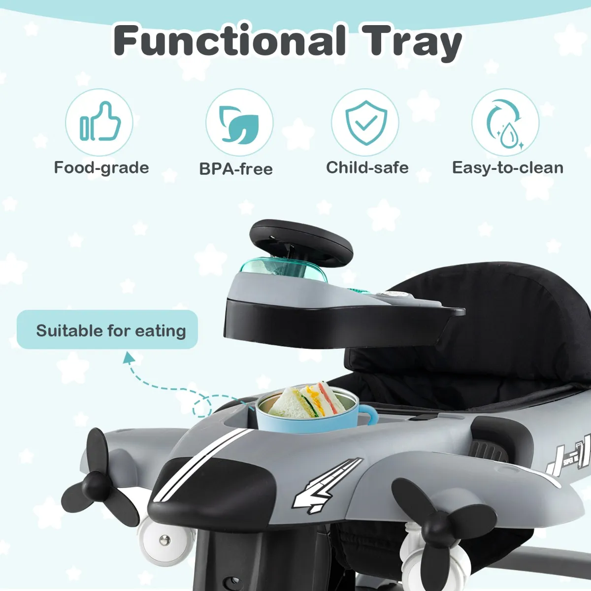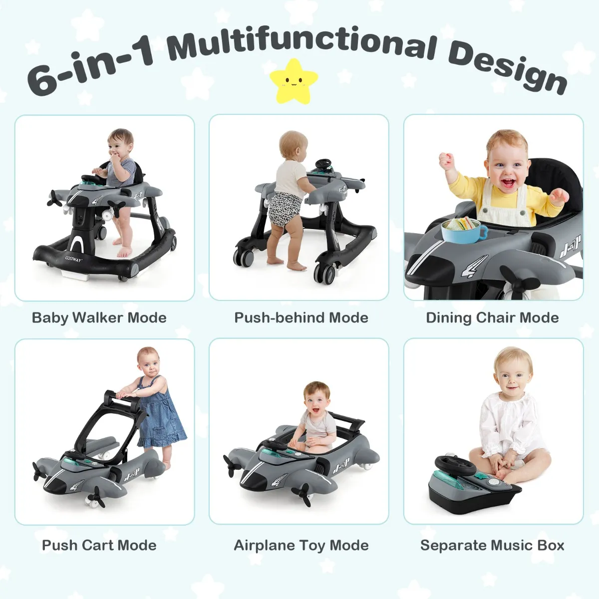 【6-in-1 multifunctioneel design】: De loophulp kan worden omgezet in de aanschuif-, eetkamerstoel-, schuifwagen- of vliegtuigmodus om aan de verschillende behoeften van je baby te voldoen. Zelfs de muziekdoos kan voor apart gebruik worden verwijderd.