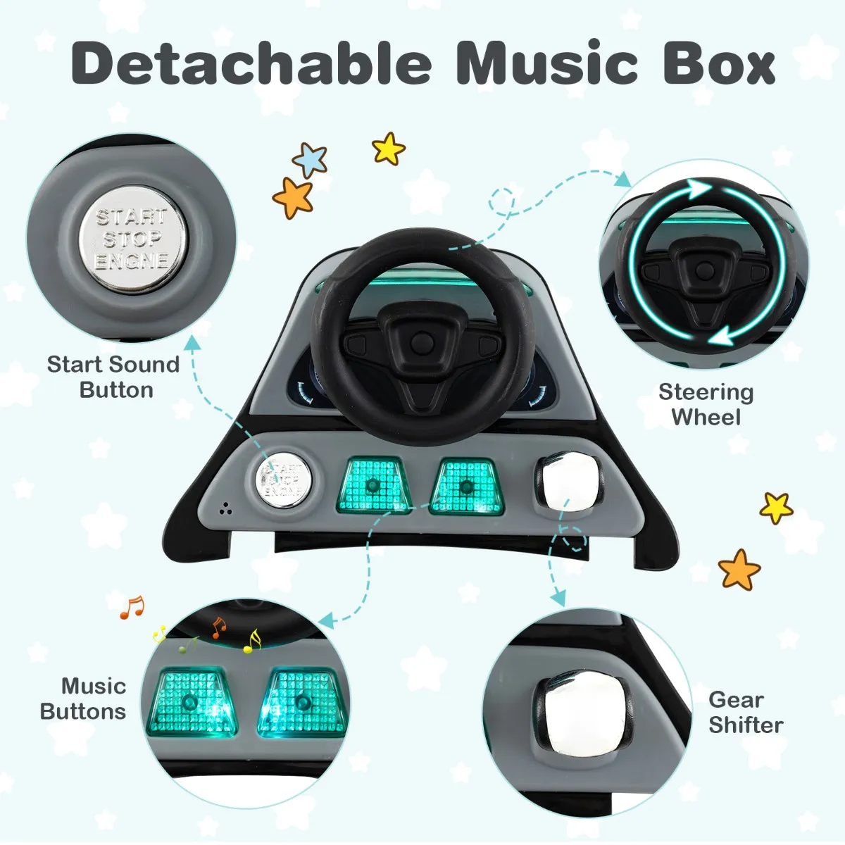【Grappige muziekdoos en eettafel】: De afneembare muziekdoos heeft een flexibel stuur en een versnellingshendel. Hij beschikt bovendien over een starttoonknop en twee muziekknoppen met ledverlichting. Nadat je de muziekdoos hebt verwijderd, vind je een functioneel dienblad dat geschikt is voor levensmiddelen, BPA-vrij en gemakkelijk te reinigen is.