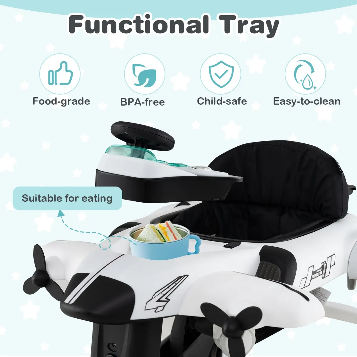【6-in-1 multifunctioneel design】: De loophulp kan worden omgezet in de aanschuif-, eetkamerstoel-, schuifwagen- of vliegtuigmodus om aan de verschillende behoeften van je baby te voldoen. Zelfs de muziekdoos kan voor apart gebruik worden verwijderd.