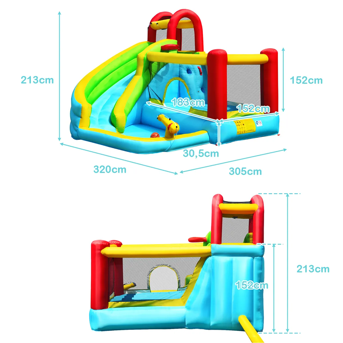 - Inhoud verpakking: 1 × Opblaasbare waterglijbaan1 × Opbergtas1 × Waterslang1 × Reparatieset1 × Opblaasbare basketbal6 × Haringen