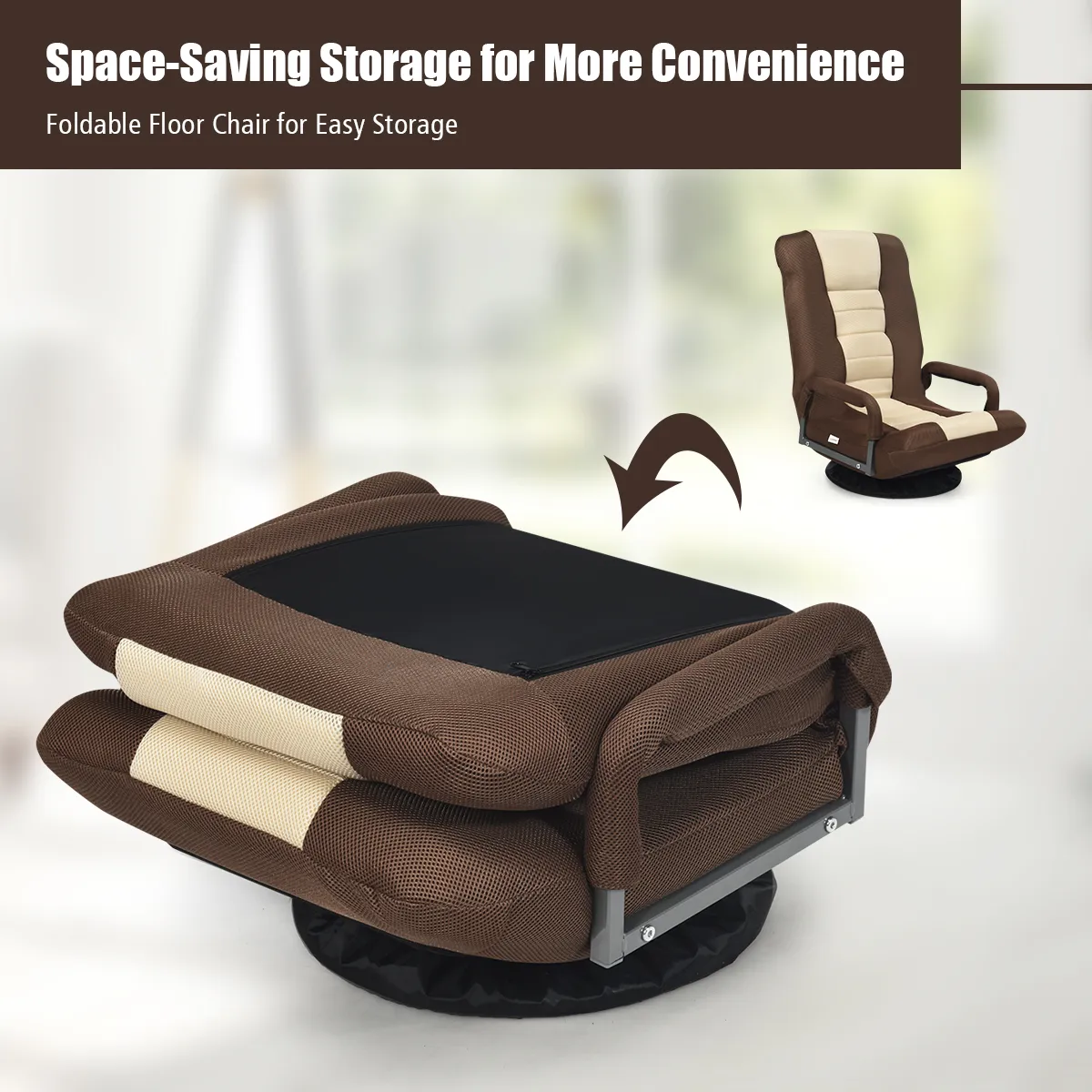 【6-positie verstelling & 360° draaibaar】De vloerstoel is ontworpen met een verstelbare 6-positie rugleuning om aan verschillende individuele eisen te voldoen. De rugleuning kan eenvoudig in de door u gewenste hoek worden versteld, waarbij u alleen uw lichaamsdruk hoeft uit te oefenen. Meer, 360° draaivoet brengt veel meer gemak bij het draaien om uw lichaam voor extra plezier.