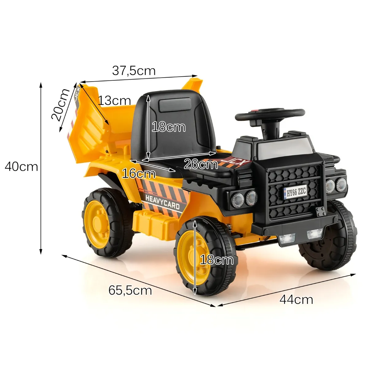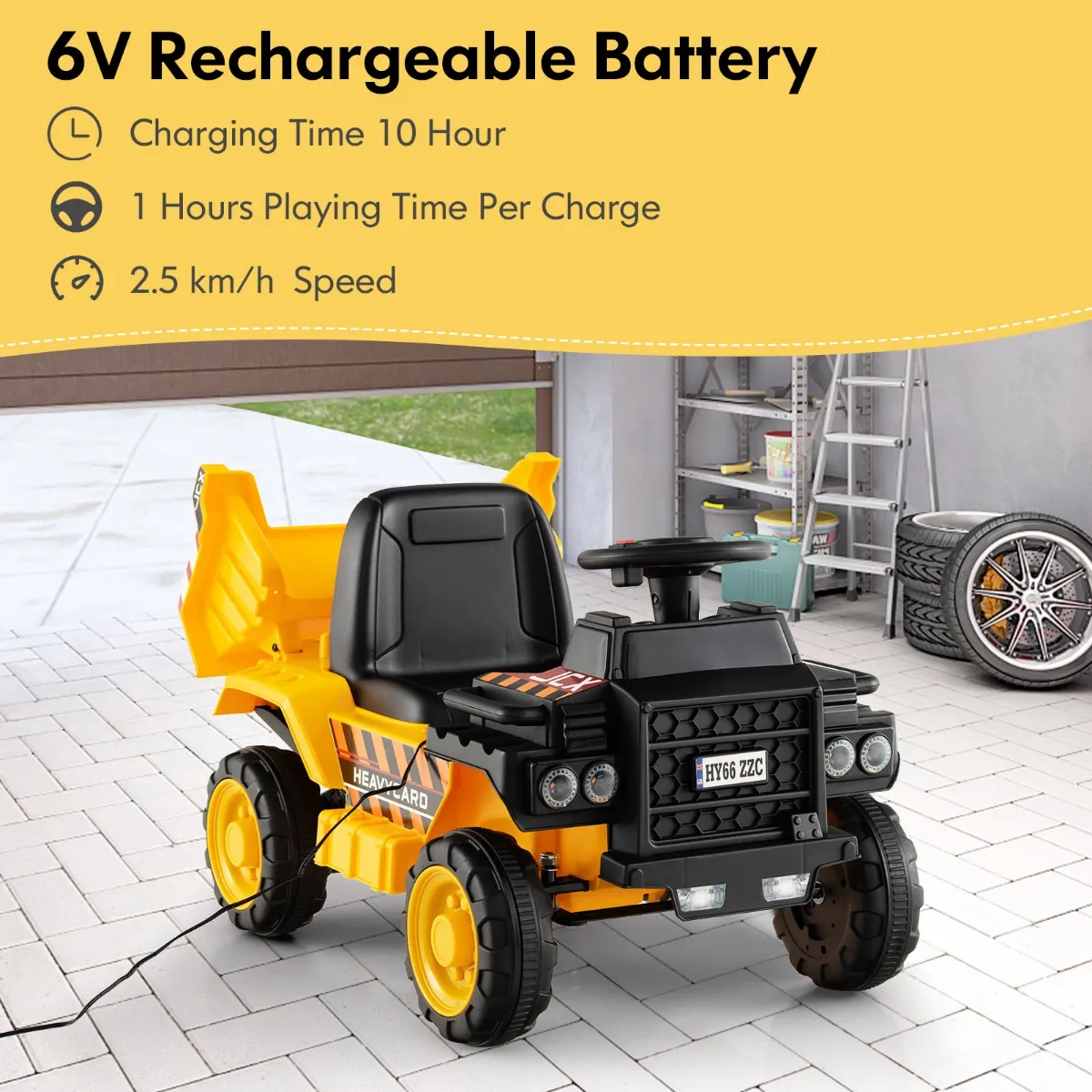 Zeer efficiënte accu-Uitgerust met een oplaadbare 6 V 4 Ah accu voor lang spelen maakt deze elektrische speelgoedauto na 10 uur volledige oplaadtijd een speeltijd van 1 uur per lading mogelijk. Bovendien moet je ten minste eenmaal per maand opladen als je de bouwwagen niet gebruikt.