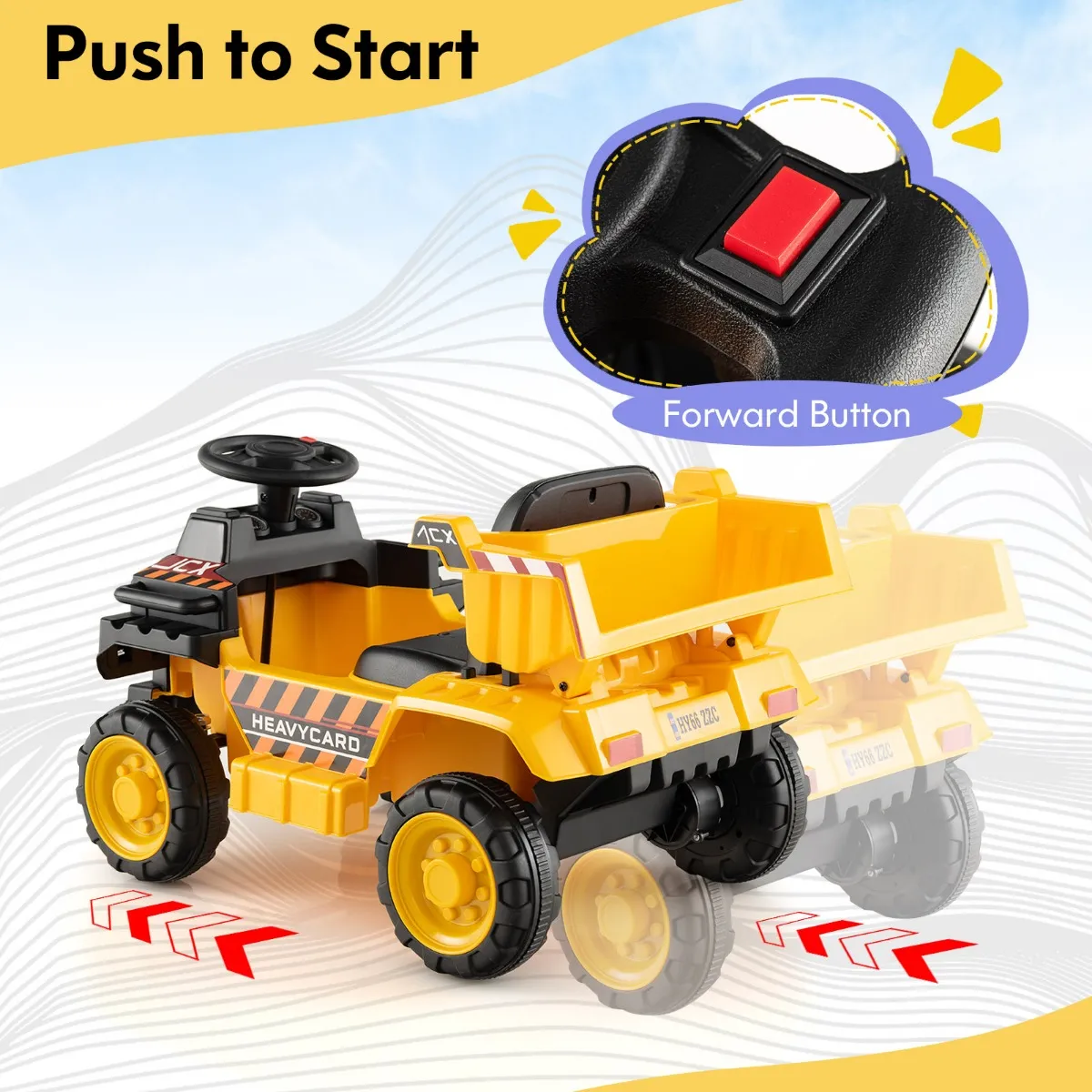 Start met één druk op de knop- Geniet van de leuke rijervaring met een snelheid van maximaal 2,5 km/u, wat je kind in een comfortabele omgeving veel plezier geeft. Afgezien daarvan is deze elektrische auto voor kinderen eenvoudig te bedienen. Druk gewoon op de vooruitknop en de elektrische graafmachine is klaar voor gebruik.