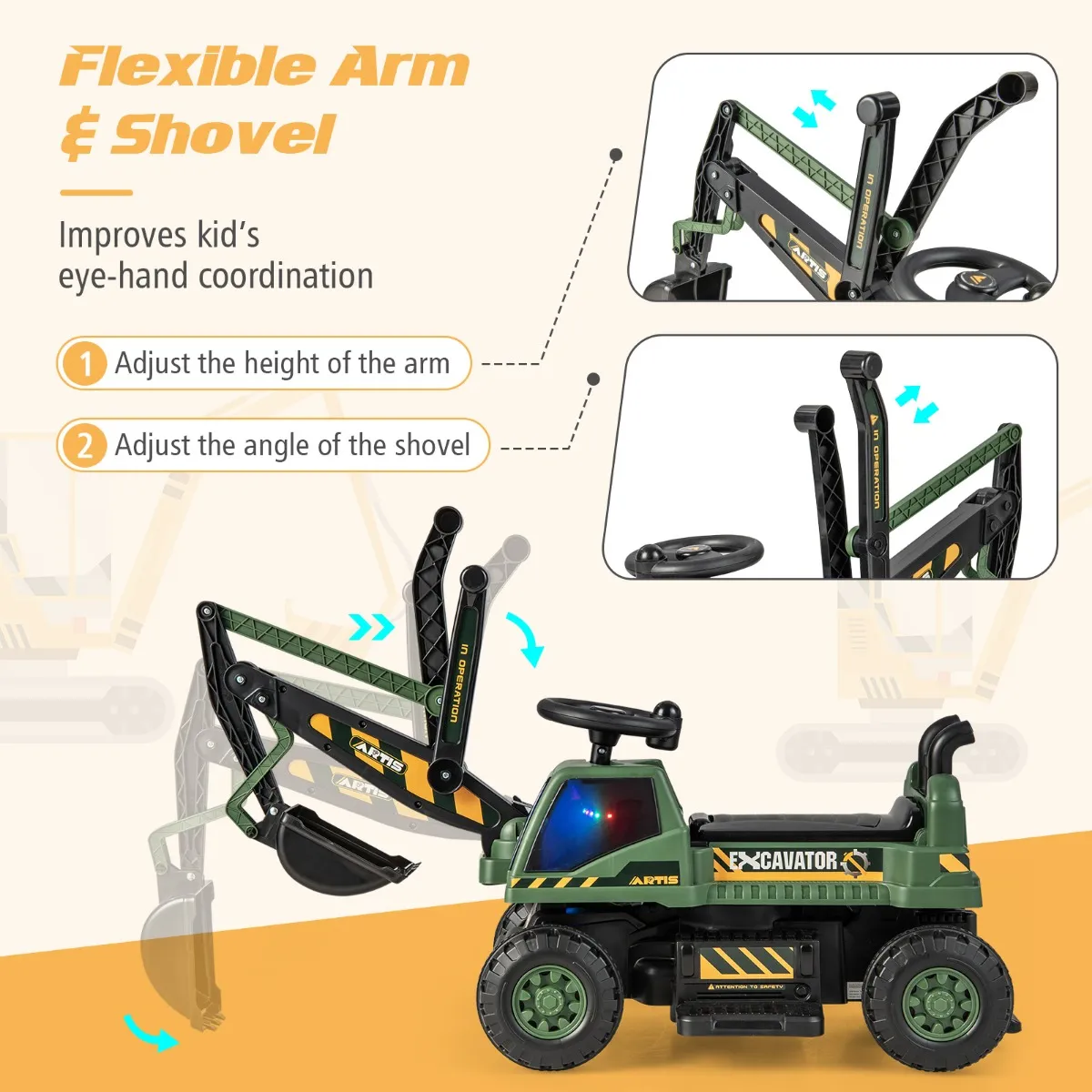 【2 werkmodi】Graafmodus: De rijfunctie is uitgeschakeld en de stoel kan heen en weer draaien om gemakkelijker te graven. Rijmodus: kinderen kunnen het pedaal indrukken om te versnellen en loslaten om te stoppen.