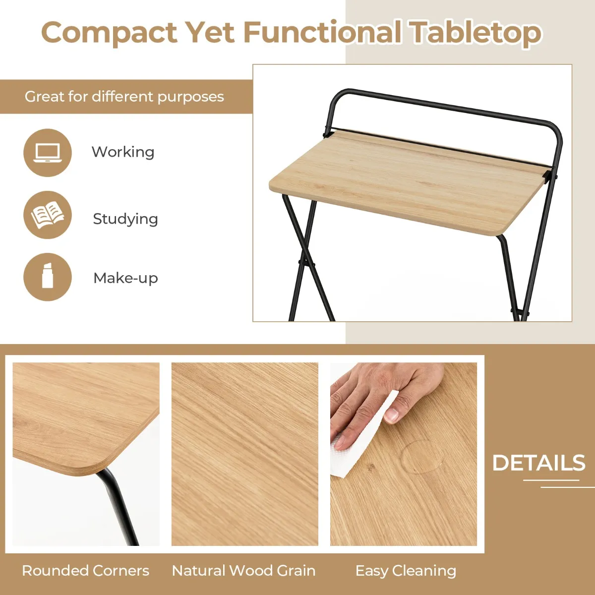 Functionele ruimte : Het inklapbare bureau is compact in formaat, maar functioneel in gebruik. Het royale tafelblad biedt voldoende ruimte voor een laptop, notitieboeken of zelfs een kopje koffie en maakt het mogelijk om zo te werken, te studeren of make-up te doen.