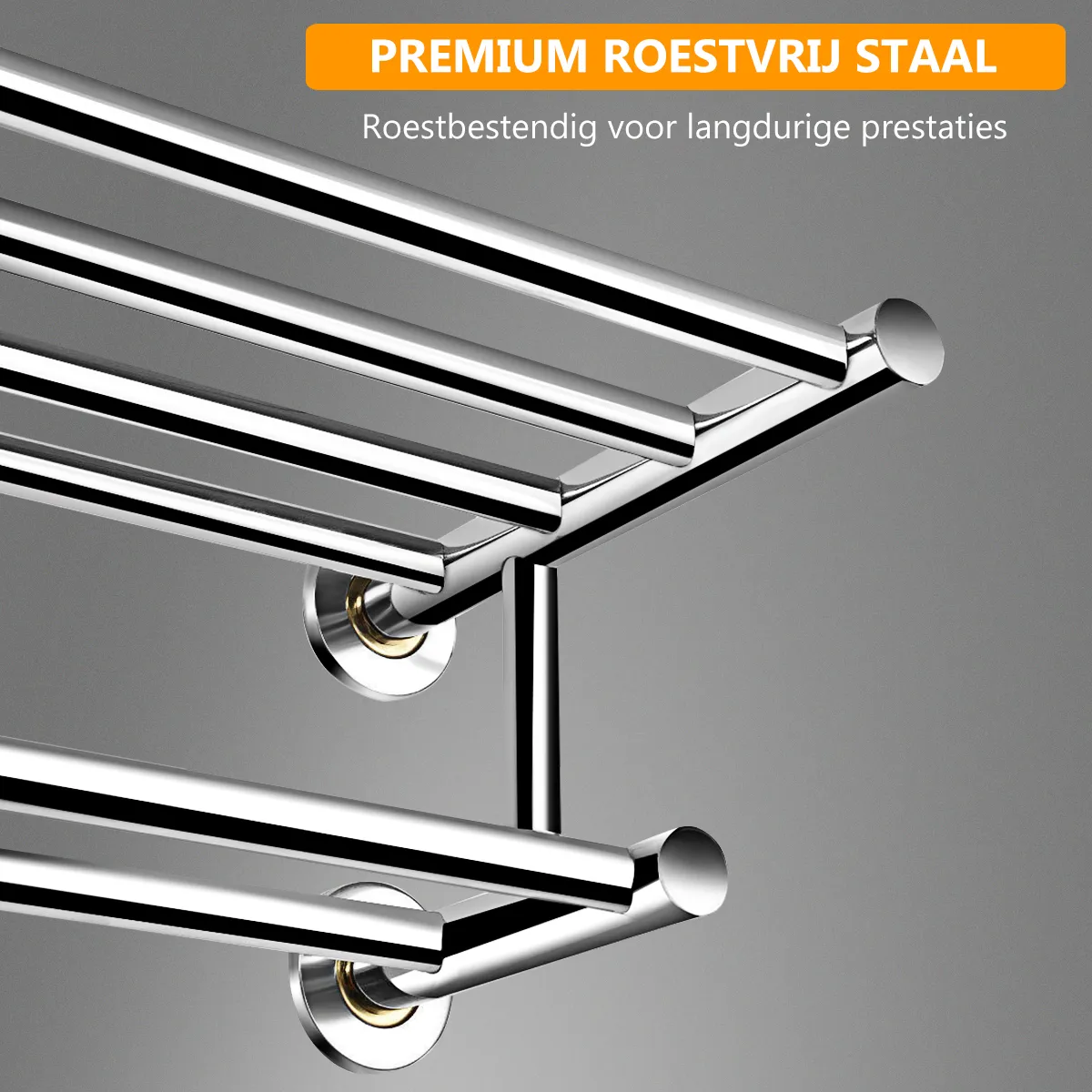 Het ontwerp voor wandmontage maximaliseert de ruimte van uw kamer. Dit handdoekenrek heeft twee handdoekenrekken, die veel ruimte bieden voor het opbergen van uw handdoeken. Het unieke ontwerp voor wandmontage optimaliseert de ruimte in uw kamer. Kom en koop het!