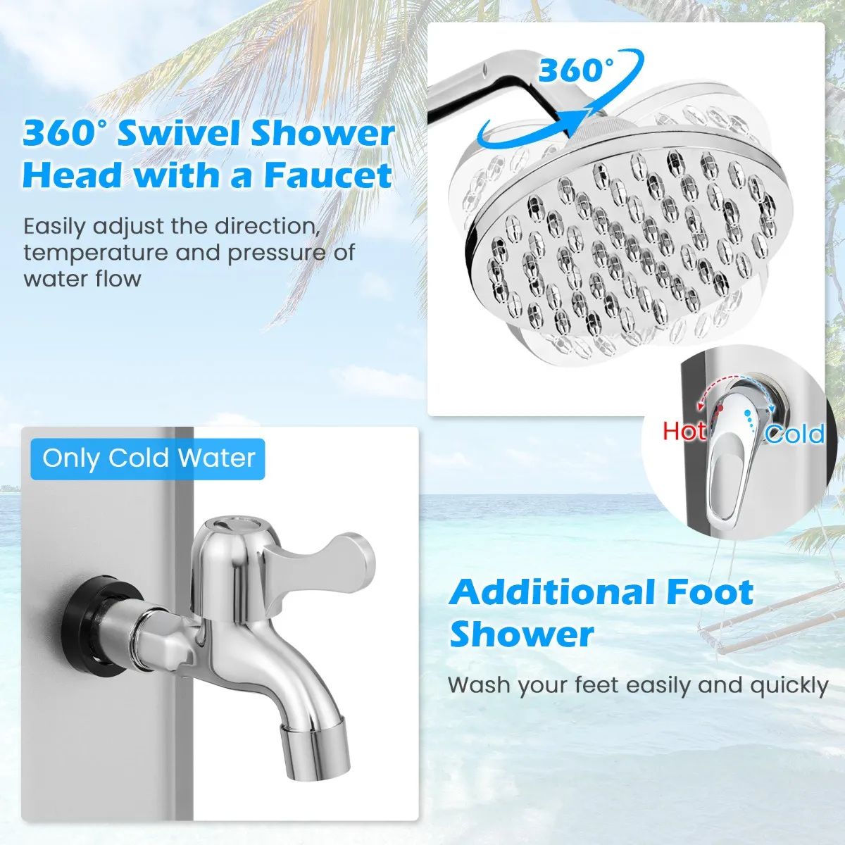 【Gemakkelijk te gebruiken】: Met een 360° draaibare douchekop met kraan biedt onze buitendouche superieure controle en flexibiliteit en is hij gemakkelijk verstelbaar om alle gebruikers de beste wasbeurt te geven. Bovendien maakt de extra voetdouche het wassen van voeten snel en gemakkelijk.