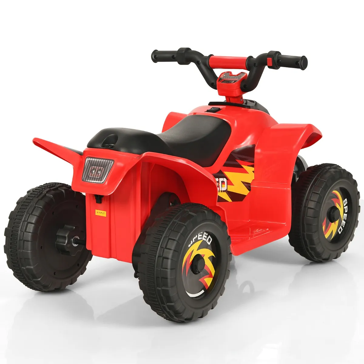 【Slijtvaste wielen voor binnen- en buiten ritten】Uitgerust met 4 grote wielen, heeft de ride on quad een laag zwaartepunt, voor een stabiele rijervaring. Ondertussen, bieden de wielen een hogere weerstand tegen slijtage. Op deze manier kan het kind het rijden op verschillende gronden, zowel binnen als buiten, zoals houten vloer, asfalt weg en nog veel meer.