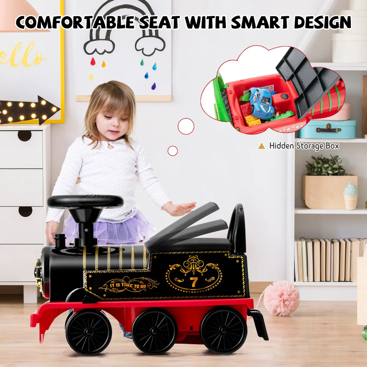 【Verborgen opbergruimte】Deze mooie peuter treinset heeft een comfortabele zitting met slim ontwerp. Na het openen van de zitting verschijnt een geheime opbergdoos, zodat uw kinderen zijn kleine speelgoed erin kunnen opbergen zonder zich zorgen te maken over verlies en zijn favoriete speelgoed bij zich kunnen dragen terwijl hij deze speelgoedtrein in de buitenlucht bestuurt.