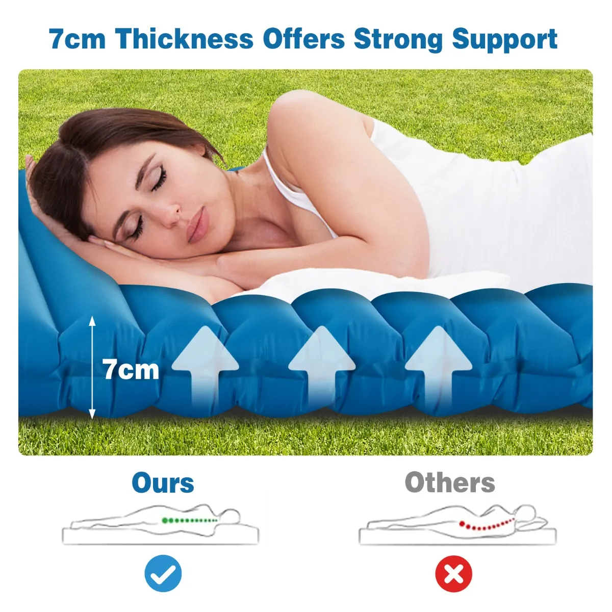 【Comfortabele slaapervaring】Met een dikte van 7 cm houdt de campingmatras je weg van stevige, koude vloeren en gaat warmteverlies tegen. Bovendien biedt het een stevige ondersteuning en een draagvermogen tot 100 kg, zodat je in elke slaaphouding goed kunt slapen.