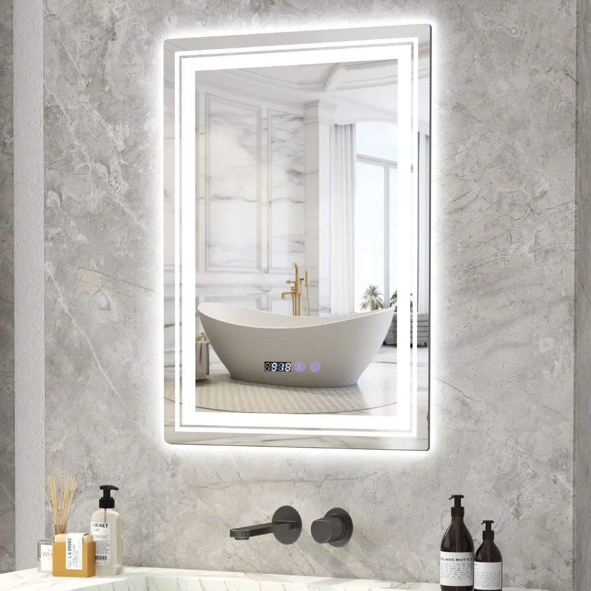 Onze rechthoekige spiegel heeft een innovatieve automatische ontwasemingsfunctie die het spiegeloppervlak snel reinigt, zodat je met één druk op de knop een helder spiegelbeeld hebt. De 3 LED-verlichtingseffecten – warm, natuurlijk en wit – creëren de perfecte sfeer. De spiegel is gemaakt van onbreekbare materialen van hoge kwaliteit en wordt geleverd met een explosieveilige folie voor duurzaamheid. Dankzij het high-definition oppervlak biedt hij een heldere reflectie. Hij wordt geleverd met 3 ophanggaten aan de achterkant en expansieschroeven voor een veilige, moeiteloze installatie.