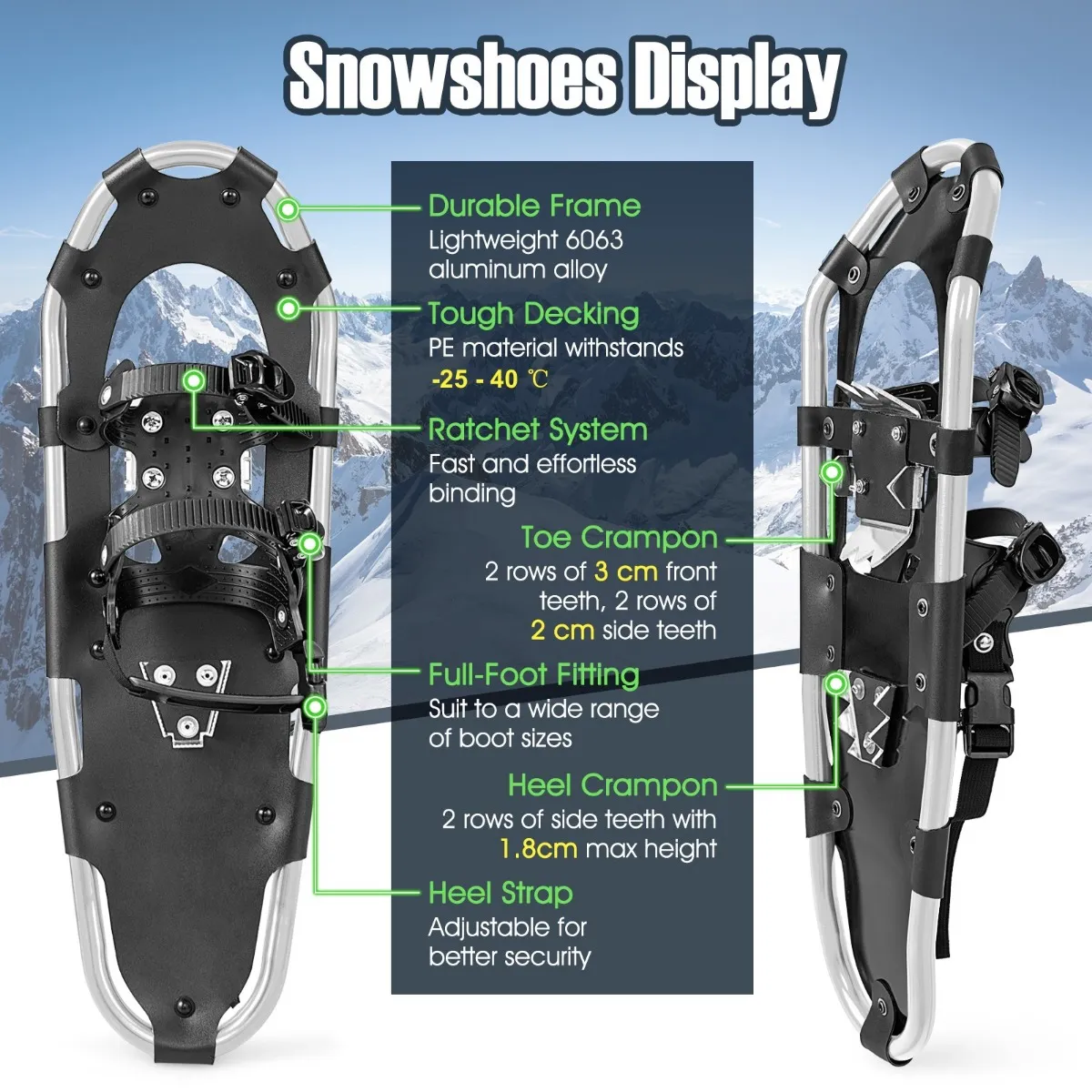 Licht en draagbaar design: De lichte sneeuwschoenen voor volwassenen en kinderen zijn arbeidsbesparend en eenvoudig te dragen. Met een totaal nettogewicht van minder dan 2,9 kg is deze sneeuwschoenenset comfortabel te dragen en te vervoeren. De set bevat een draagtas met schouderriem van waterdicht Oxford-weefsel, ideaal en duurzaam voor gebruik buitenshuis.