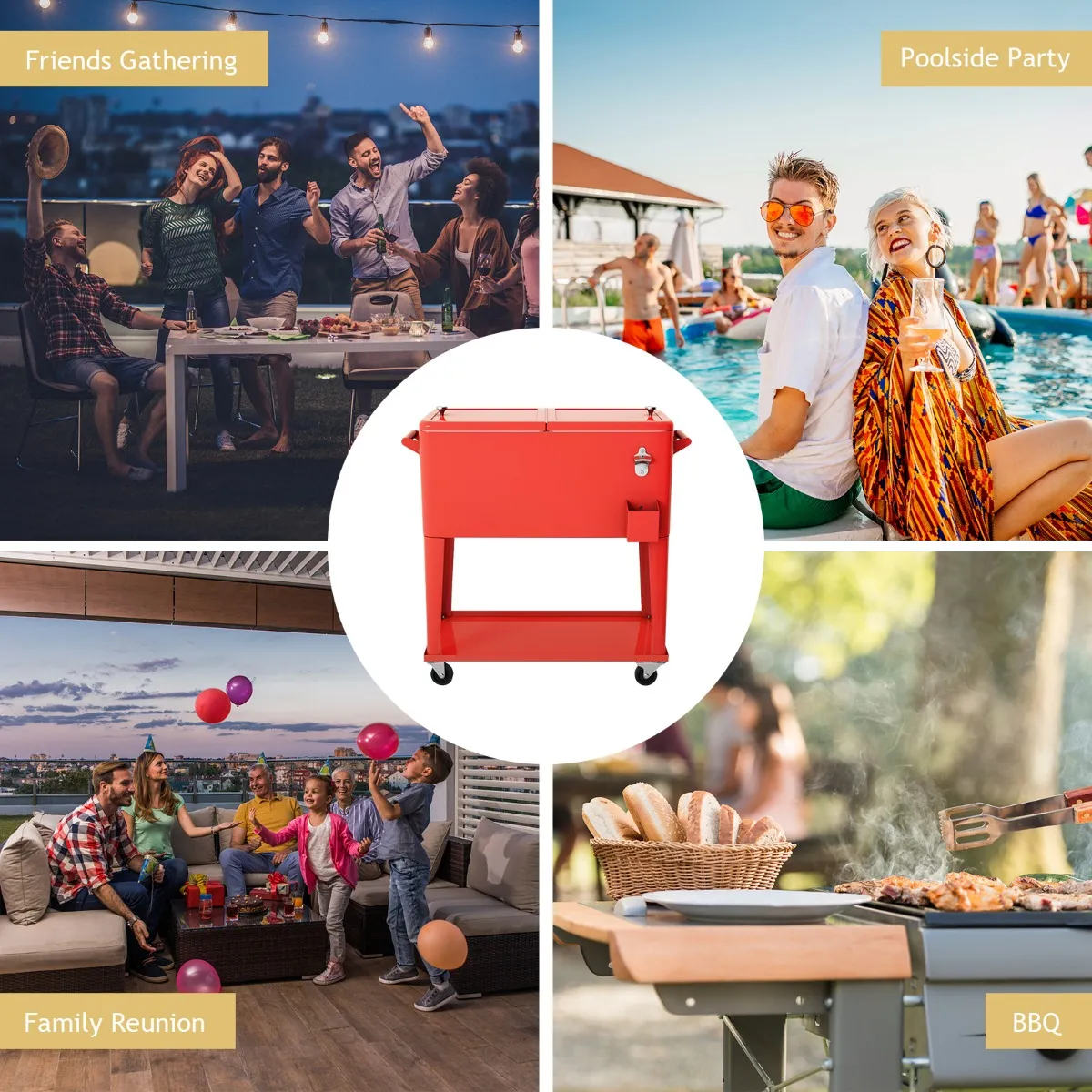【Houd koel en warm】Deze bolderwagen koeler keurt geavanceerde hoge druk schuimende technologie goed om grote temperatuurisolatie te hebben. Het houdt voedsel en drank koel of warm tot 72 uur en kan worden gebruikt om drank, lunchboxen, zelfs fruit en groenten op te slaan.