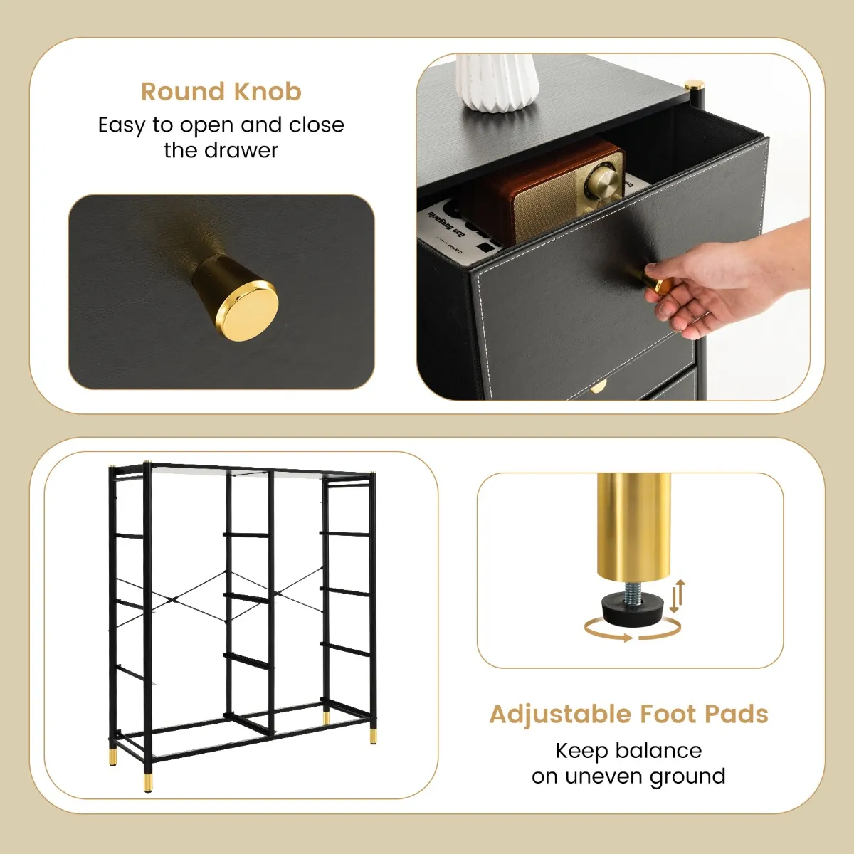 【Stevig, stabiel metalen frame】 De 8-ladekast is gemaakt van een stevig metalen frame en is sterk genoeg om een totaal gewicht van 90 kg te dragen. Bovendien zijn er 2 anti-kantelsets, een versterkt ‘X’-ontwerp en verstelbare voetsteunen om een evenwichtige structuur te behouden.