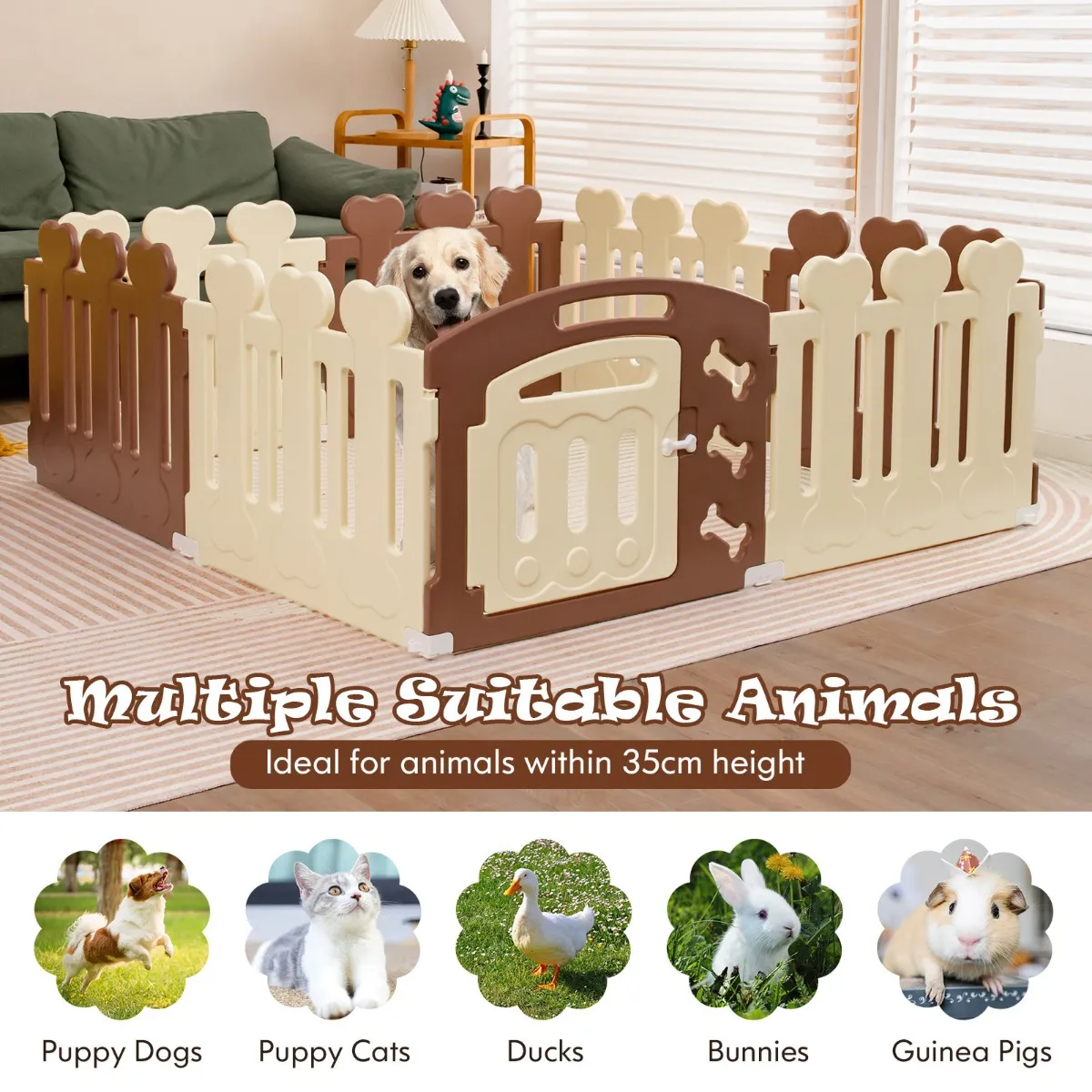 Meerdere geschikte dieren: Deze box is geschikt voor dieren tot 35 cm hoogte. Daarom is hij geschikt voor meerdere kleine huisdieren, zoals puppy’s, kittens, eenden, konijnen, cavia’s enz.