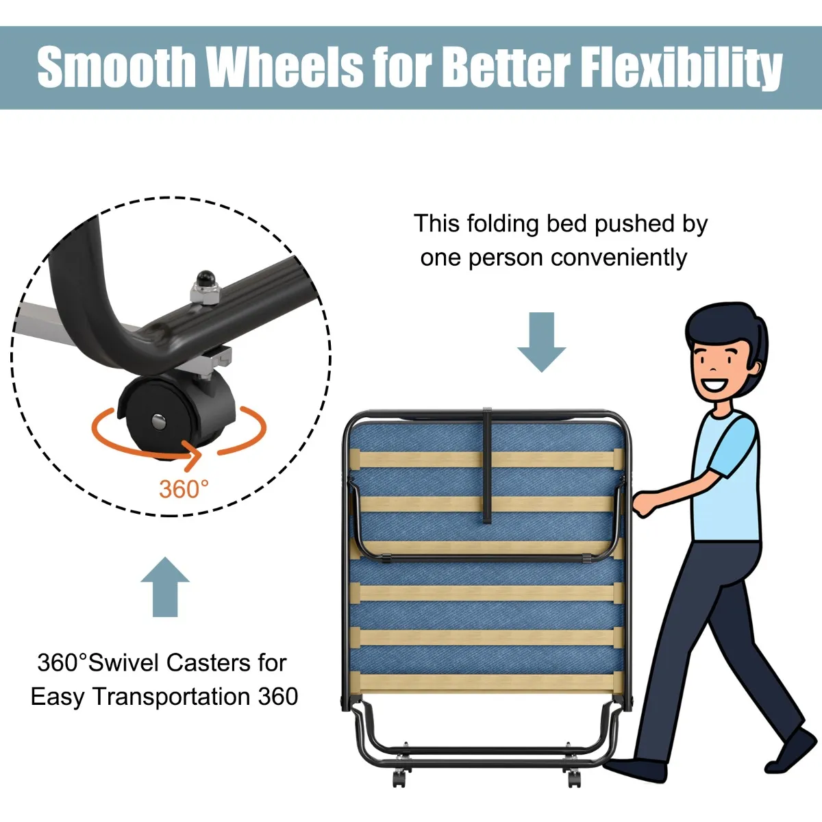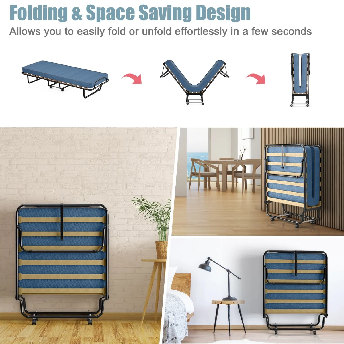【Gemakkelijk te verplaatsen en veelzijdig gebruik】 4 360° draaibare wielen laten je het klapbed eenvoudig naar elke gewenste positie verplaatsen. Dit logeerbed met de gezellige traagschuimmatras is de perfecte keuze om je gasten of vrienden te tegemoetkomen, een dutje te doen tijdens de lunchpauze of om je op de volgende reis te ontspannen.