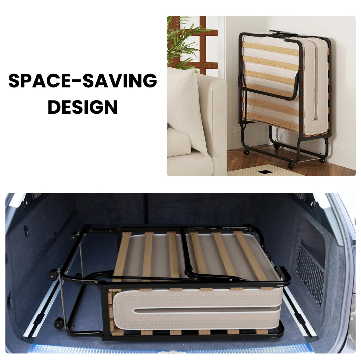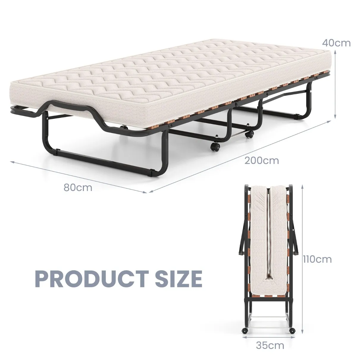 【Ruimtebesparend opvouwbaar bed】: Dit logeerbed kan eenvoudig worden opgevouwen en vastgezet met veilige gespen. Eenmaal opgevouwen kunt u de compacte afmetingen van 80 x 110 x 35 cm discreet opbergen in een hoekje van het huis, waardoor u de leefruimte optimaal benut.
