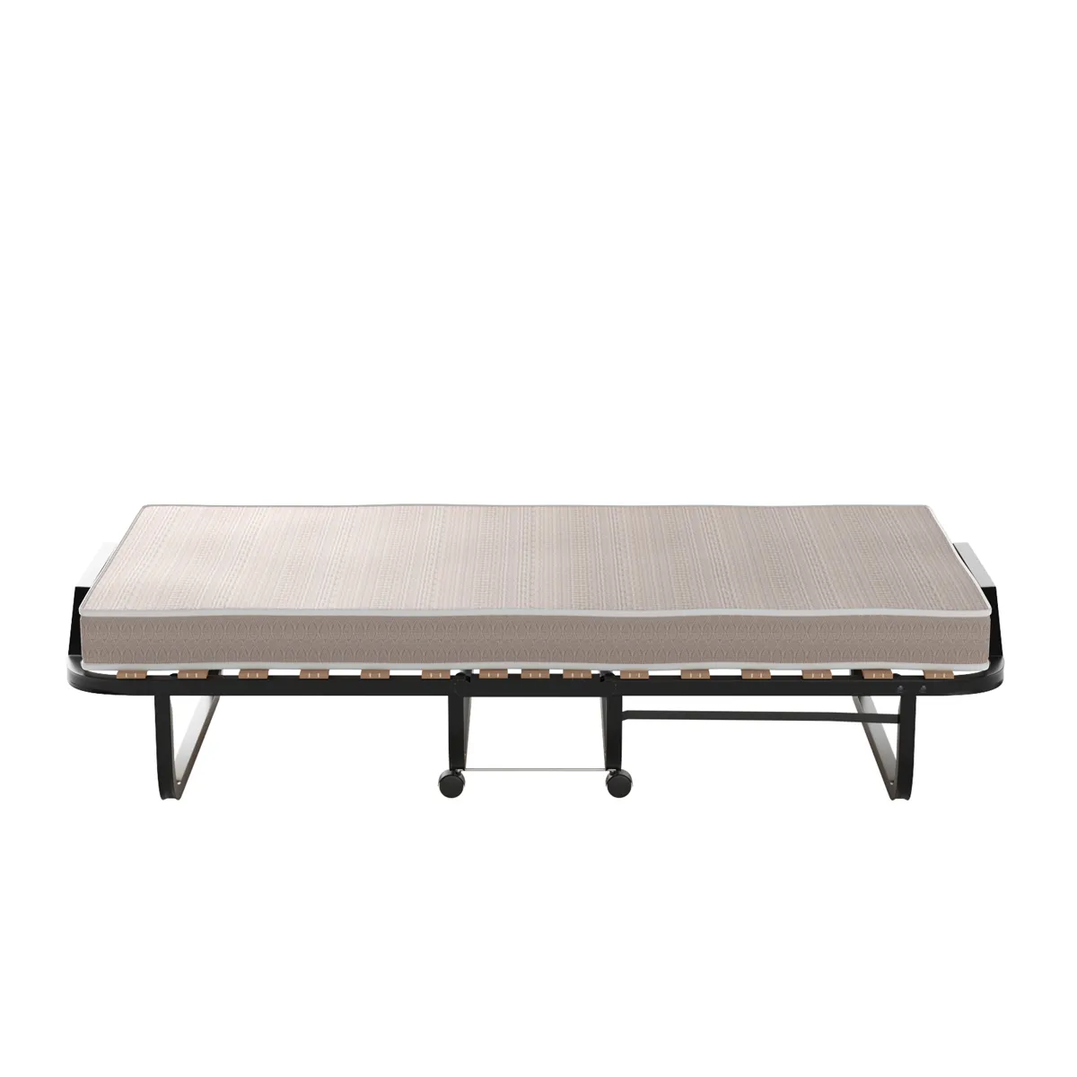 Gemaakt van hoogwaardig staal, het bedframe is stevig en duurzaam met een lange levensduur. Stevige houten latten en zware poten zorgen voor uitstekende belastbaarheid. De matras is gemaakt van steunschuim met hoge dichtheid en traagschuim, dat zacht en veerkrachtig is. Dit bed is ook uitgerust met 4 soepele wielen, die overal naartoe kunnen worden verplaatst. Bovendien kan dit bed, wanneer het niet wordt gebruikt, snel worden opgevouwen tot een compact formaat voor opslag.