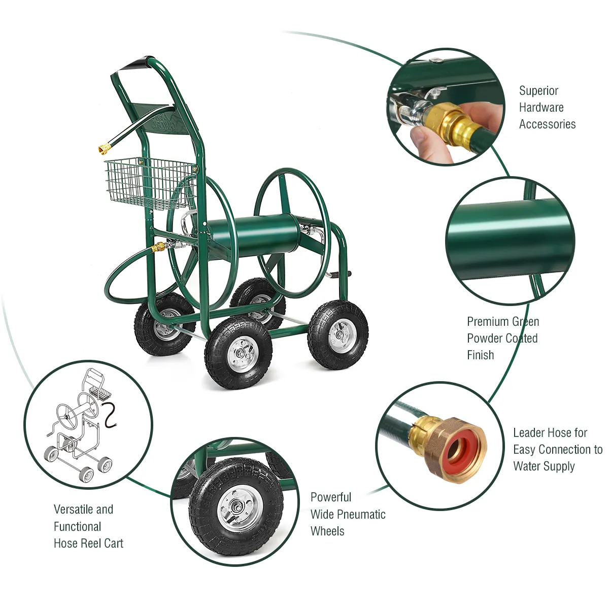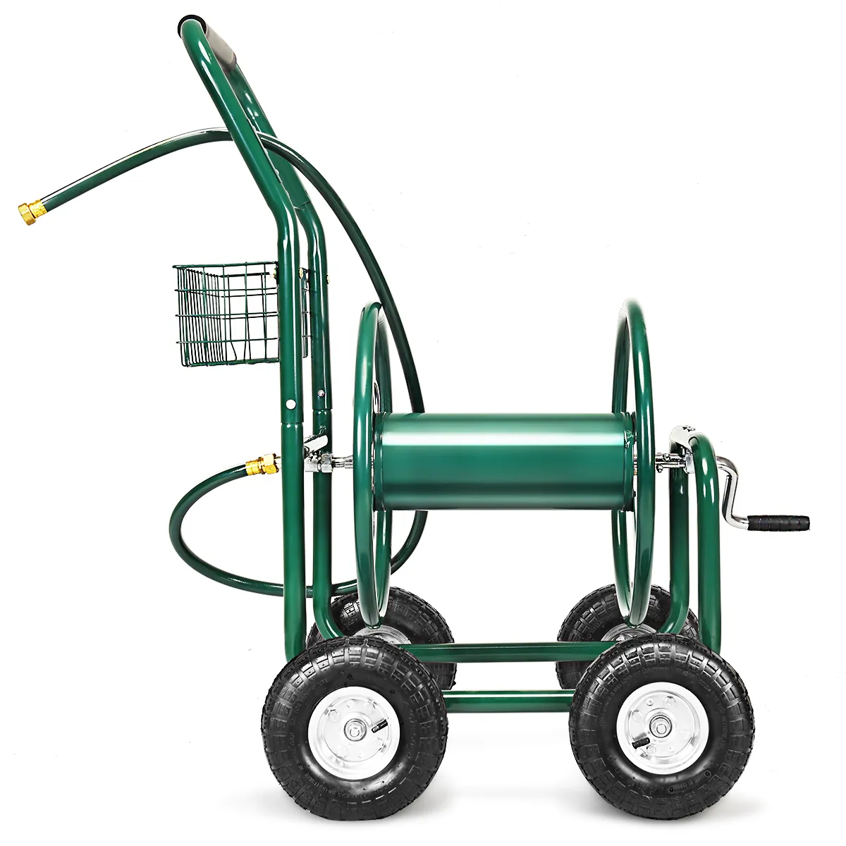 Deze tuinslanghaspel is de beste hulp om uw tuin weer op te bouwen. Nu kunt u comfortabel en zonder struikelgevaar het gazon, waterbedden of uw auto wassen. De grote wielen raken nooit plat en rollen gemakkelijk over het terrein, zelfs niet op hobbels.