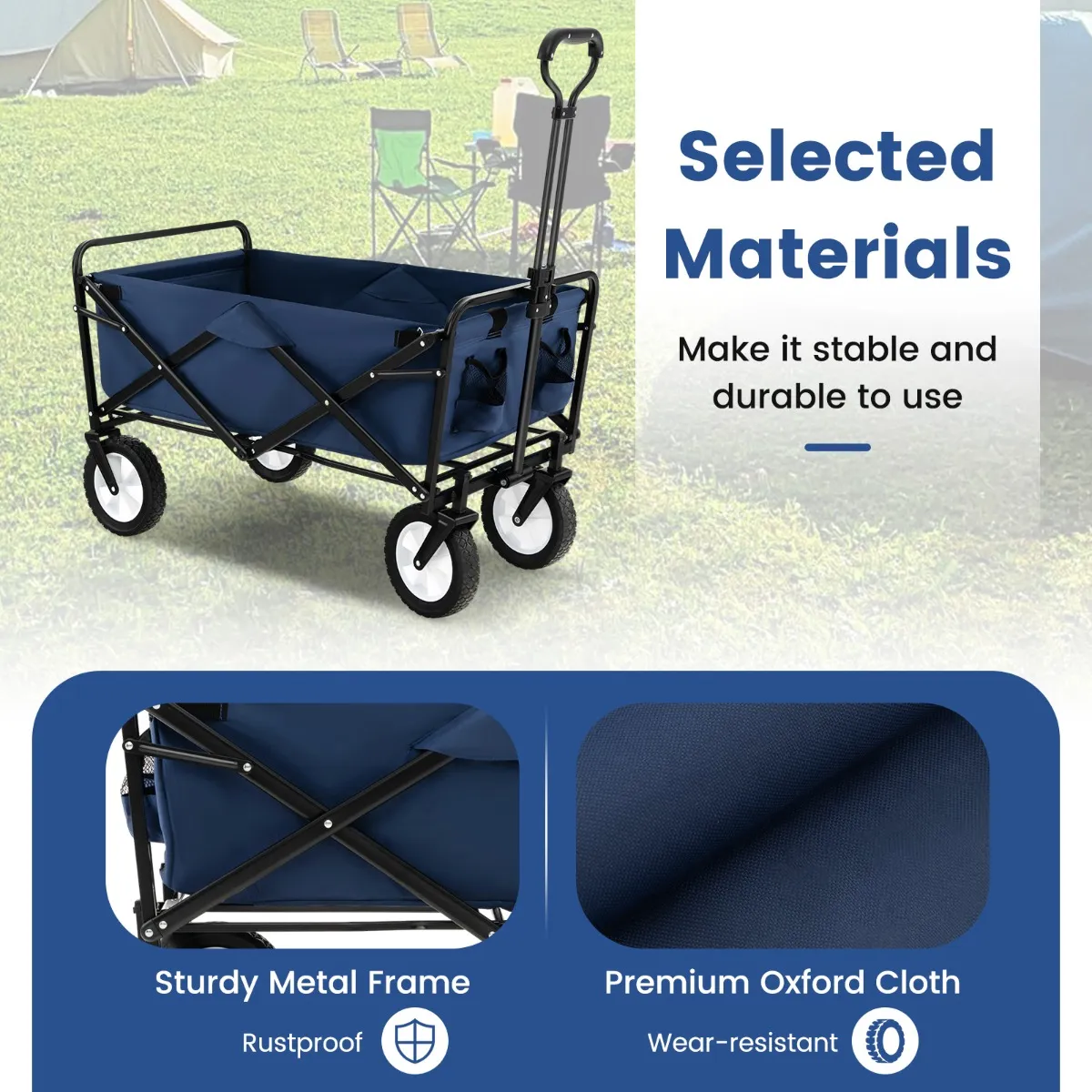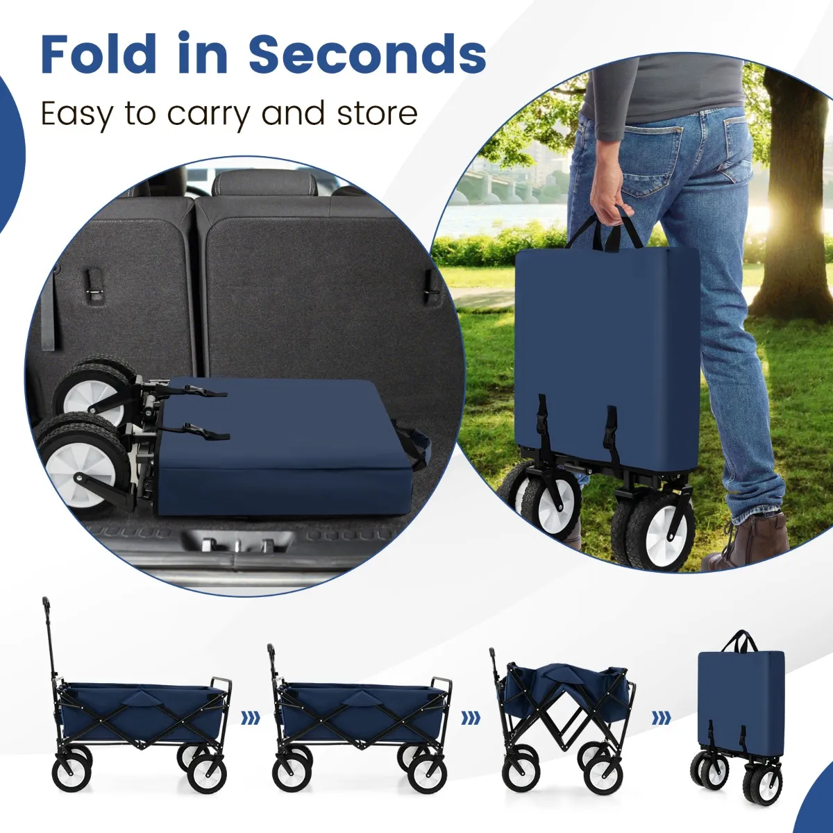 82 L Opvouwbare Trolley Stevige Trolley Met Verstelbare Handgreep En Bekerhouder Handige Trolley Voor Tuin-Donkerblauw
