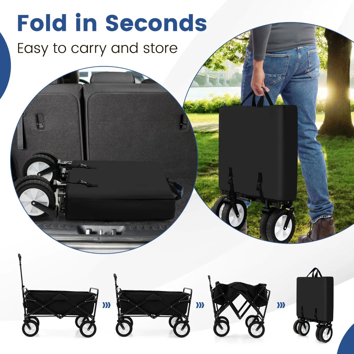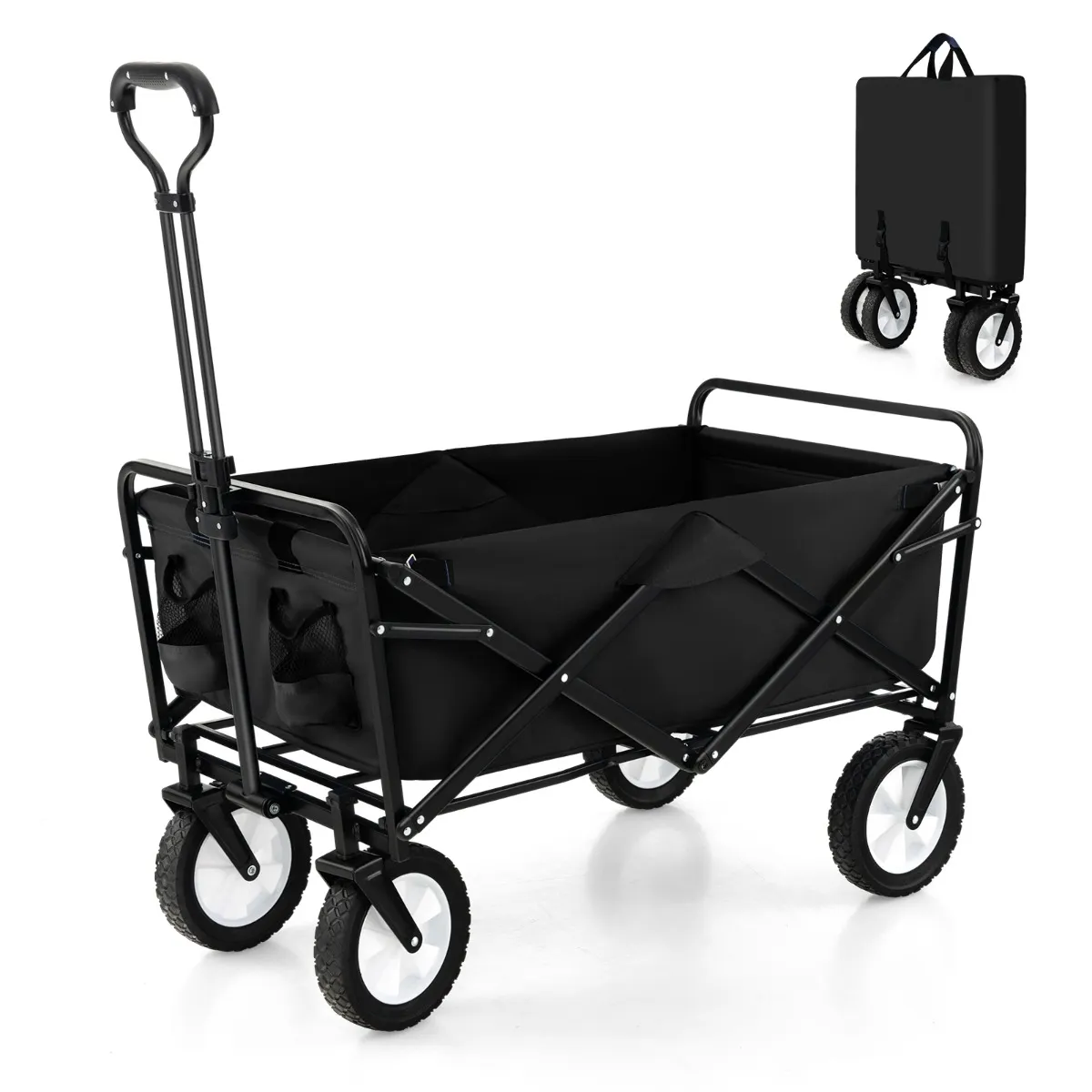 82 L Opvouwbare Trolley Stevige Trolley Met Verstelbare Handgreep En Bekerhouder Handige Trolley Voor Tuin-Zwart