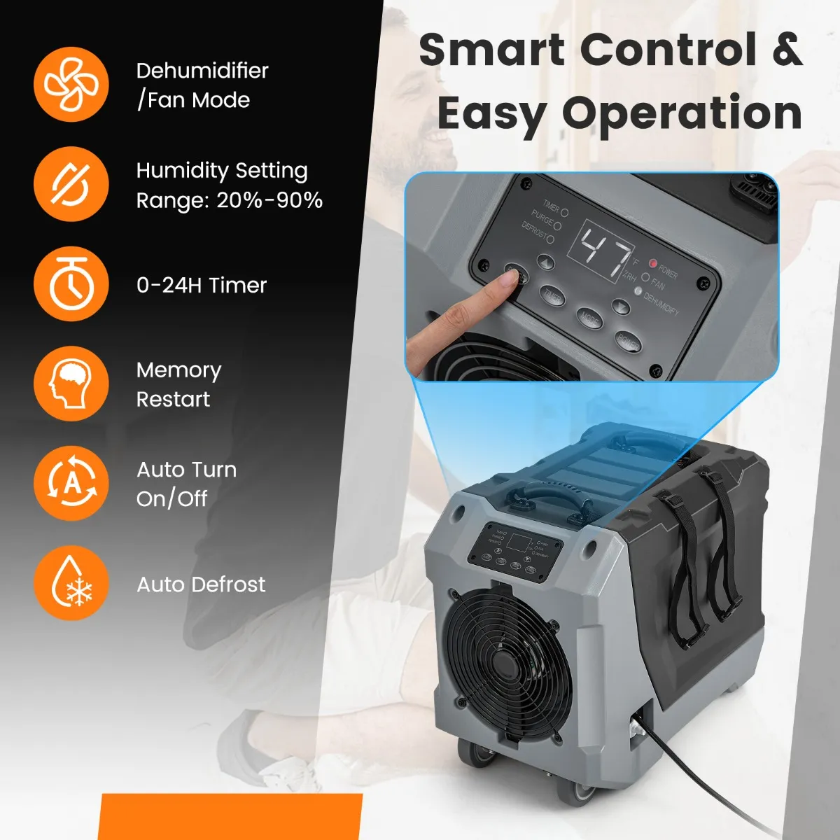 【Draagbaar ontwerp en brede toepassing】: Uitgerust met een uitschuifbare handgreep, 2 handgrepen en 2 soepele wielen, is de industriële luchtontvochtiger eenvoudig te verplaatsen. Het is een ideale ontvochtigingsoplossing voor bouwplaatsen, herstelwerkzaamheden na waterschade, magazijnen, kelders, enz.