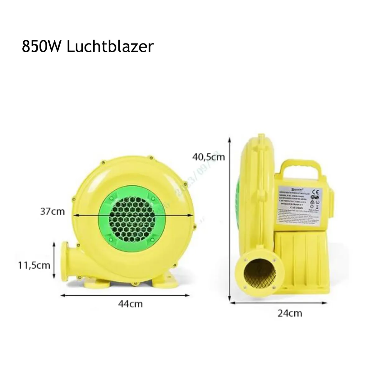 Onze blazer is ontworpen voor optimale prestaties met een uitgangsvermogen van 850W. Bovendien is hij gemaakt van hoogwaardig technisch kunststof, waardoor hij lang meegaat. Dankzij het handige handvat is hij gemakkelijk mee te nemen voor buitengebruik, perfect voor het opblazen van springkastelen, glijbanen, enz. en hij blaast snel en efficiënt op. Mis de kans niet om je opblaasbare ervaring te verbeteren. Kies onze krachtige blazer voor zijn uitzonderlijke kracht, betrouwbaarheid en efficiëntie!