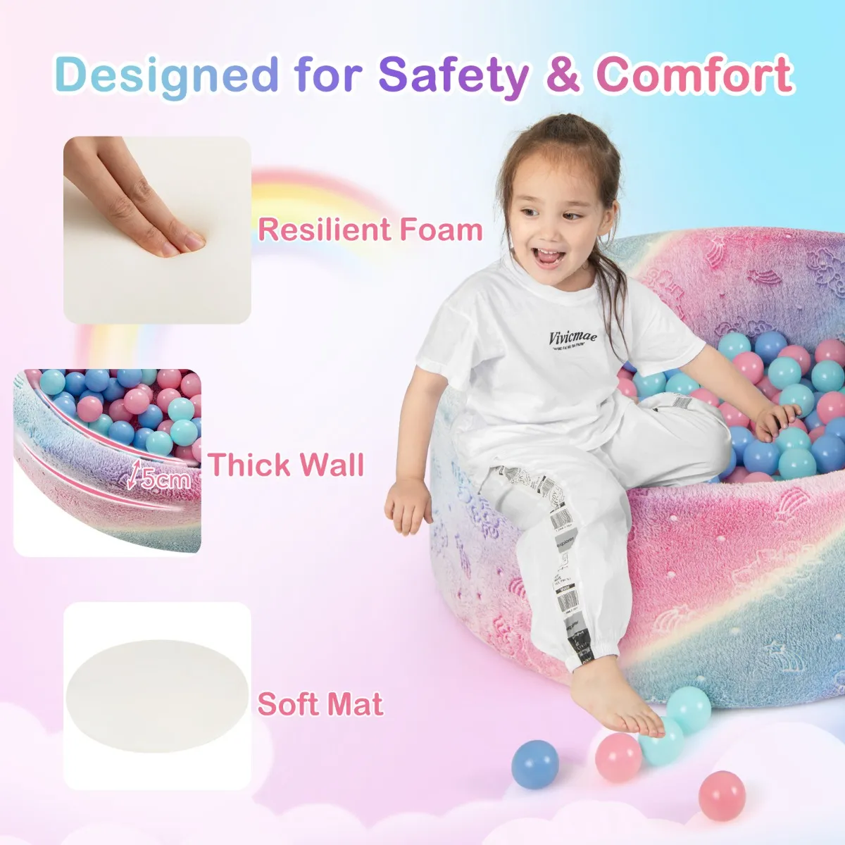 【Geen montage vereist】: Dit zachte speelzwembad hoeft niet gemonteerd te worden, u kunt het direct uit de doos gebruiken. De ballenbak is gemaakt van zelfuitzettend schuim dat na het uitpakken weer in de gewenste vorm terugveert. Bovendien is de ballenbak eenvoudig op te zetten door ouders en is het een geweldig cadeau voor jongetjes en meisjes.