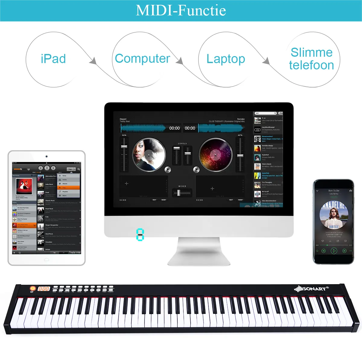 Veilig materiaal en lange levensduur: Hoogwaardige aluminiumlegering zorgt voor een stevige structuur voor een lange levensduur. Hoogwaardig materiaal en goede afwerking garanderen veiligheid. Na 4 uur opladen kan de piano 12 uur werken.
