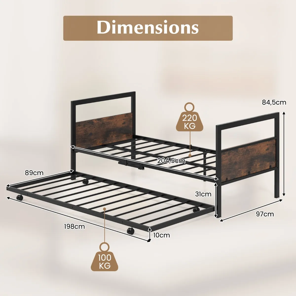 【Uittrekbaar onderschuifbed】 : Dit eenpersoonsbed heeft een praktisch uitschuifbaar onderschuifbed dat gemakkelijk kan worden uitgetrokken voor extra slaapruimte voor gasten of kinderen. 4 vergrendelbare universele wielen zorgen voor eenvoudige mobiliteit en stabiele ondersteuning.