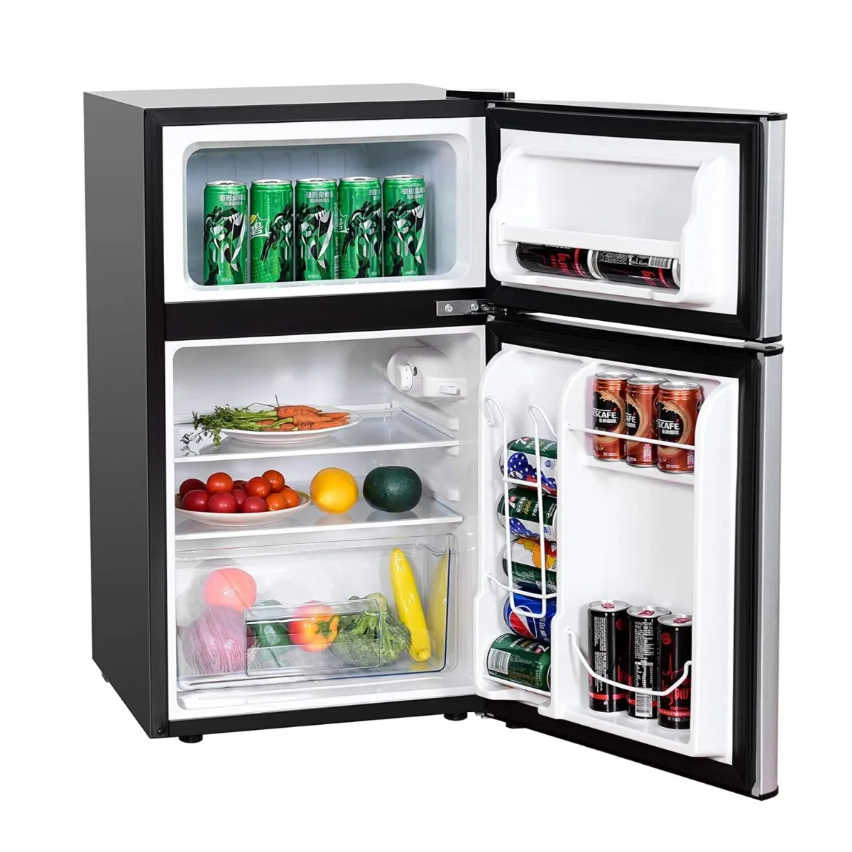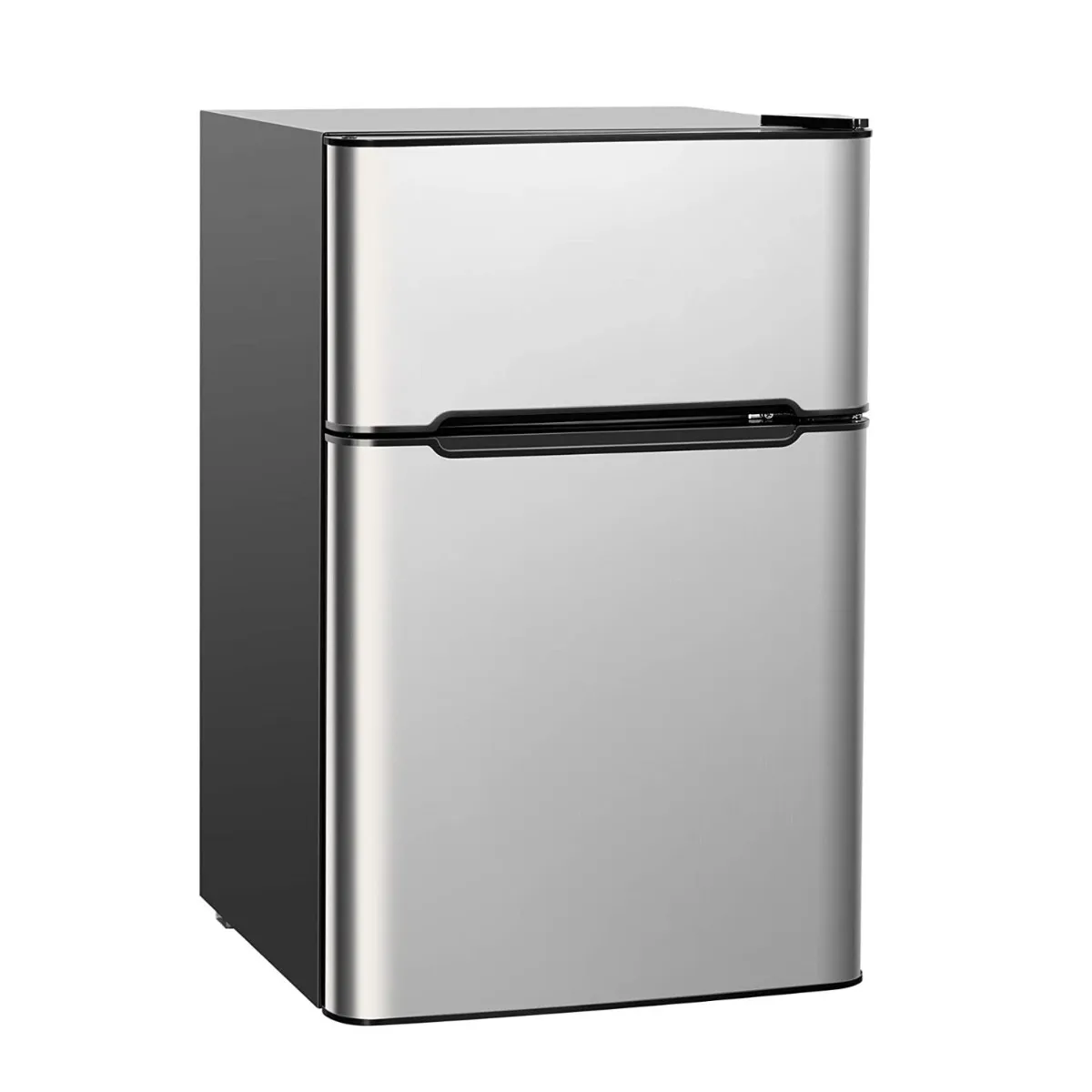 Aparte vriezer met 2 deuren: Dankzij het ontwerp met 2 deuren, wordt deze kleine koelkast geleverd met een echte aparte vriezer waarvan de laagste temperatuur kan oplopen tot -15℃. Dankzij het ontwerp met 2 deuren kunt u de vriezer apart gebruiken voor snel invriezen, waardoor voedingsstoffen snel worden opgenomen.