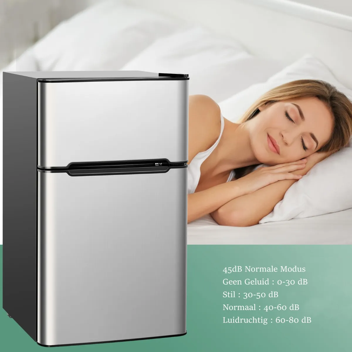 Ruimtebesparend en gemakkelijk toegankelijk: Met een oppervlakte van minder dan 2,32 vierkante meter, kan het overal worden gebruikt zonder veel ruimte in beslag te nemen en voor ingesloten gebruik gemakkelijk. Zijn antibacteriële deurverbinding helpt deur dicht houden strak wanneer niet in gebruik, en de ingebouwde handvatten staan u toe om de ijskast gemakkelijk te openen.