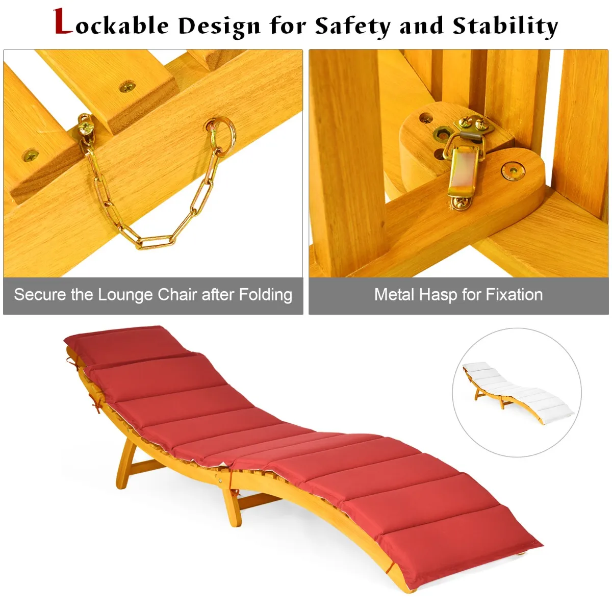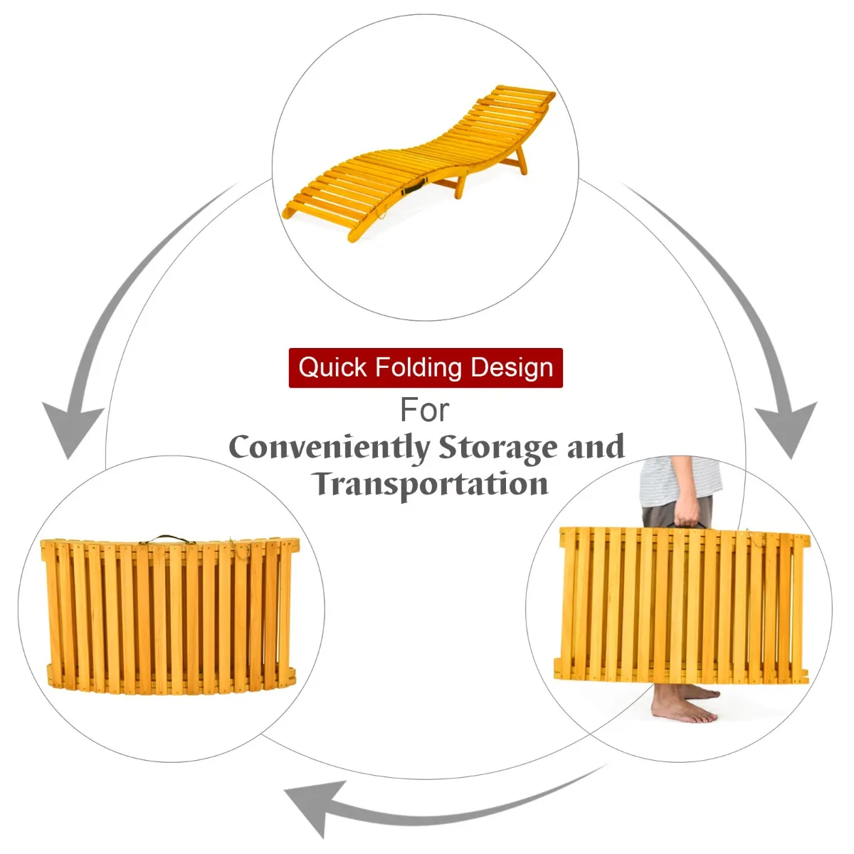 Praktisch opvouwbaar ontwerp: Deze opvouwbare houten ligstoel heeft een handige draaggreep en een veilig vergrendelingssysteem, waardoor hij eenvoudig op te bergen en te verplaatsen is wanneer hij niet in gebruik is. Â
