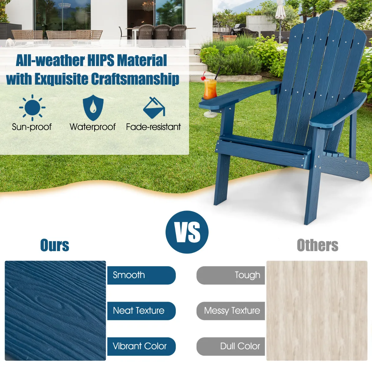 Weerbestendig materiaal: Gemaakt van hoogwaardig hips, dat glad is, niet scheurt, vervaagt of afbladdert, is de robuuste Adirondack-stoel gemakkelijk te onderhouden. Daarnaast is de stoel waterdicht om alle weersomstandigheden buiten te weerstaan.