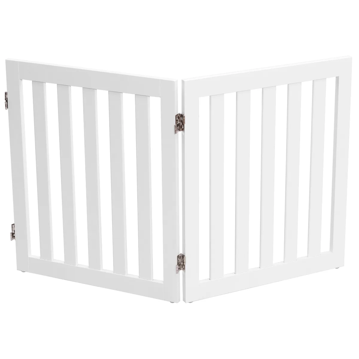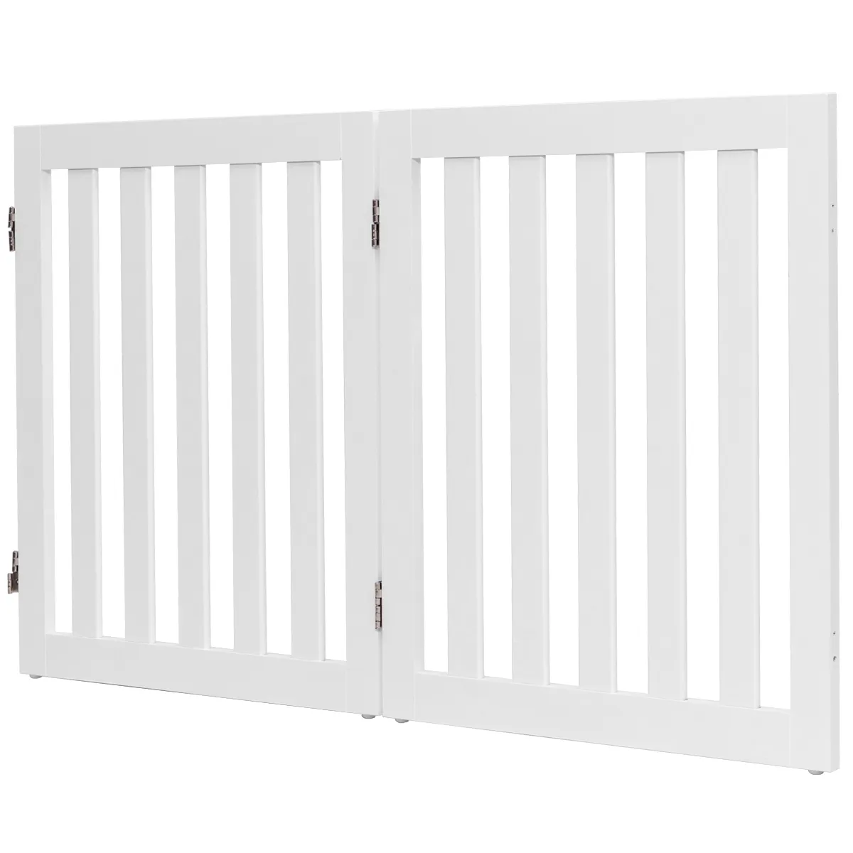 Met ons vrijstaande hek hebben ze voortaan een grote en afgesloten ruimte om te spelen. Voor de montage hoeft u niet te boren, u hoeft alleen de afzonderlijke delen met elkaar te verbinden met behulp van de scharnieren. Deze zijn 360° draaibaar, waardoor flexibele installatie op trappen, in gangen, enz. mogelijk is. Het hekje is opvouwbaar en licht van gewicht, zodat het moeiteloos kan worden vervoerd. Het ziet er ook mooi uit en is een mooie aanvulling op het interieur. Dit hekje is geschikt voor honden of andere kleine huisdieren.