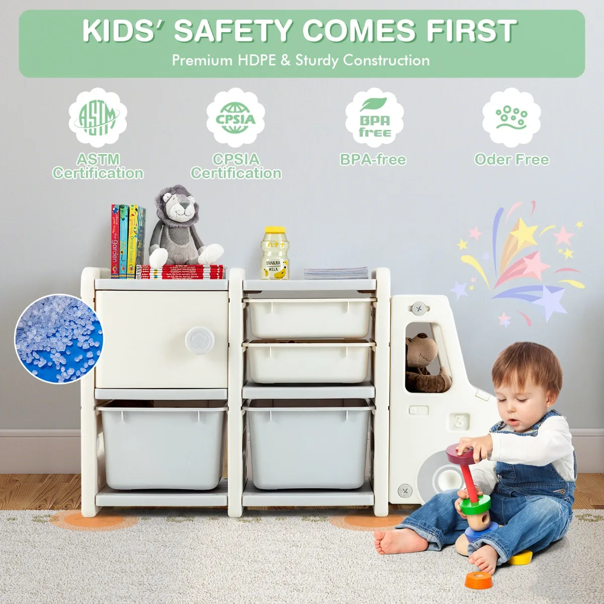 De vrachtwagenvormige opbergkist is zowel aantrekkelijk als functioneel