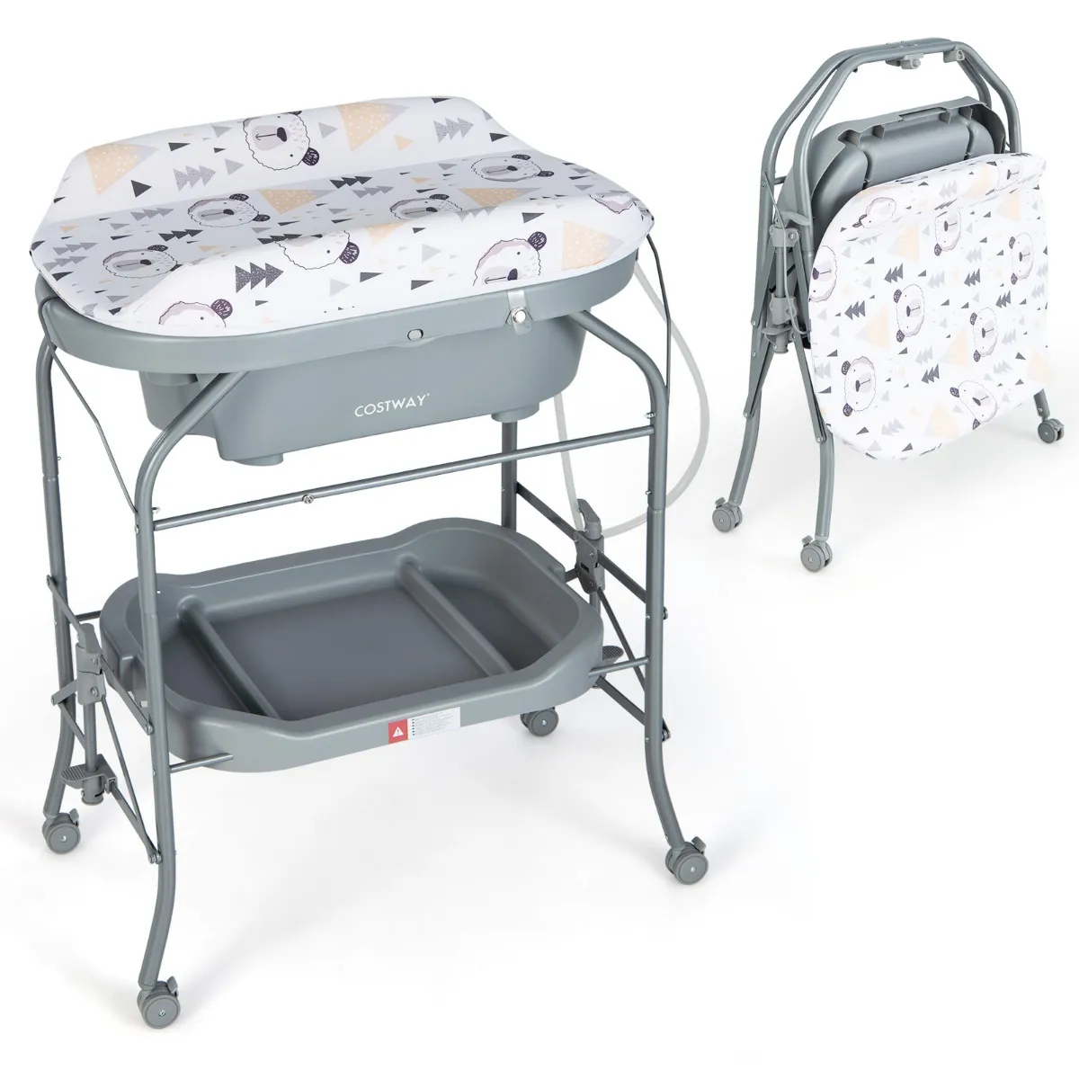 Met een praktische badkuip is dit baby verschoonstation ontworpen voor veelzijdigheid. Het is geschikt of u het gebruikt om uw baby luiers te verschonen of uw baby in bad te doen. En de opbergvakken en het opbergmandje houden baby’s benodigdheden gemakkelijk toegankelijk. Bovendien kan de redelijke hoogte uw rugpijn effectief verlichten door te veel te buigen. Het doordachte afvoersysteem maakt het afvoeren van water gemakkelijker. Wanneer u het niet hoeft te gebruiken, kunt u het luierwisselstation opvouwen en in de hoek opbergen om ruimte te besparen.