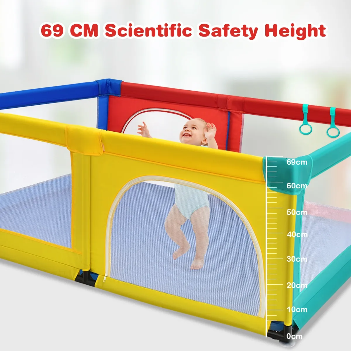 【Ademend net en ritssluiting】 De box is aan alle kanten omgeven door een zachte en ademende netstof, waardoor ouders hun kinderen altijd in het oog hebben. Deze kunnen hem niet zelfstandig verlaten.