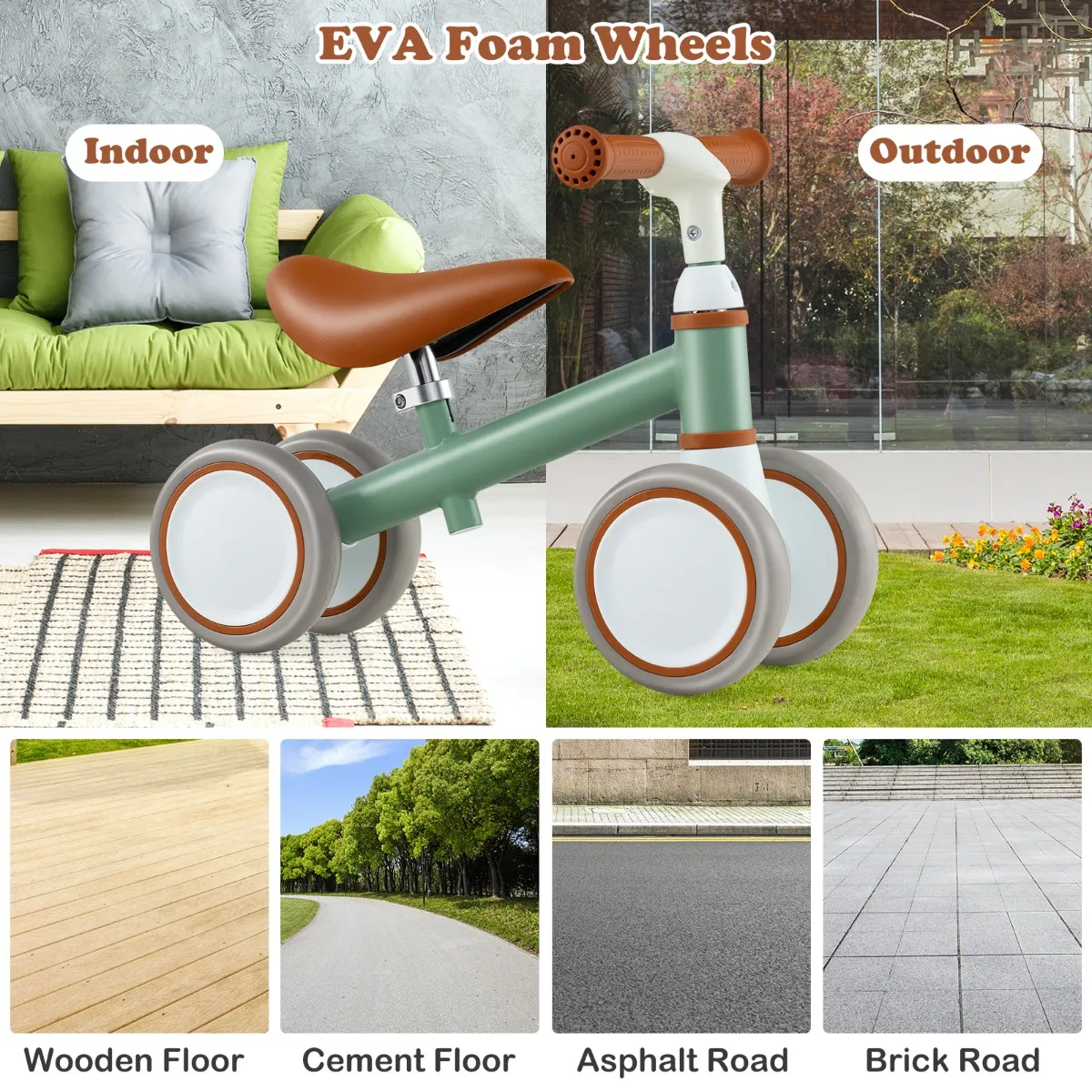 Laat je kinderen spelenderwijs ontdekken met onze babyloopfiets! Deze peuterloopfiets is ontworpen met de groei van je baby in gedachten en is voorzien van een in hoogte verstelbaar stuur en een zitje, voor een comfortabele rit gedurende de hele ontwikkeling. Veiligheid staat voorop met vierwielstabiliteit, een stuur met veiligheidslimiet van 80° en antislip handgrepen voor een betere grip. Je kleintje zal genieten van soepele ritten op verschillende ondergronden dankzij de soepele, stille wielen. Deze vierwielfiets is ook voorzien van een gevoerd zitkussen voor extra comfort tijdens lange ritten. Deze eerste fiets is eenvoudig te monteren en is klaar voor spannende speeltijd, waarmee je kind zijn of haar evenwicht, motoriek en zelfvertrouwen kan verbeteren.